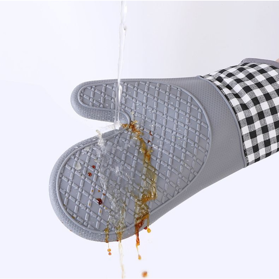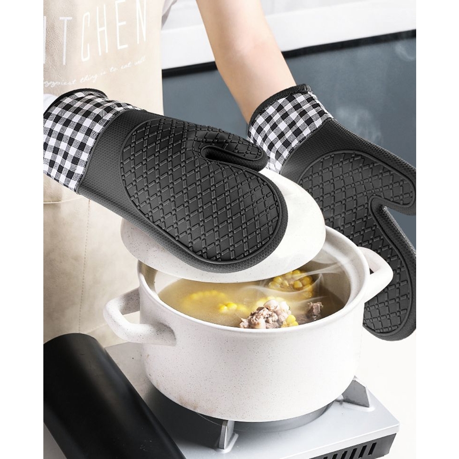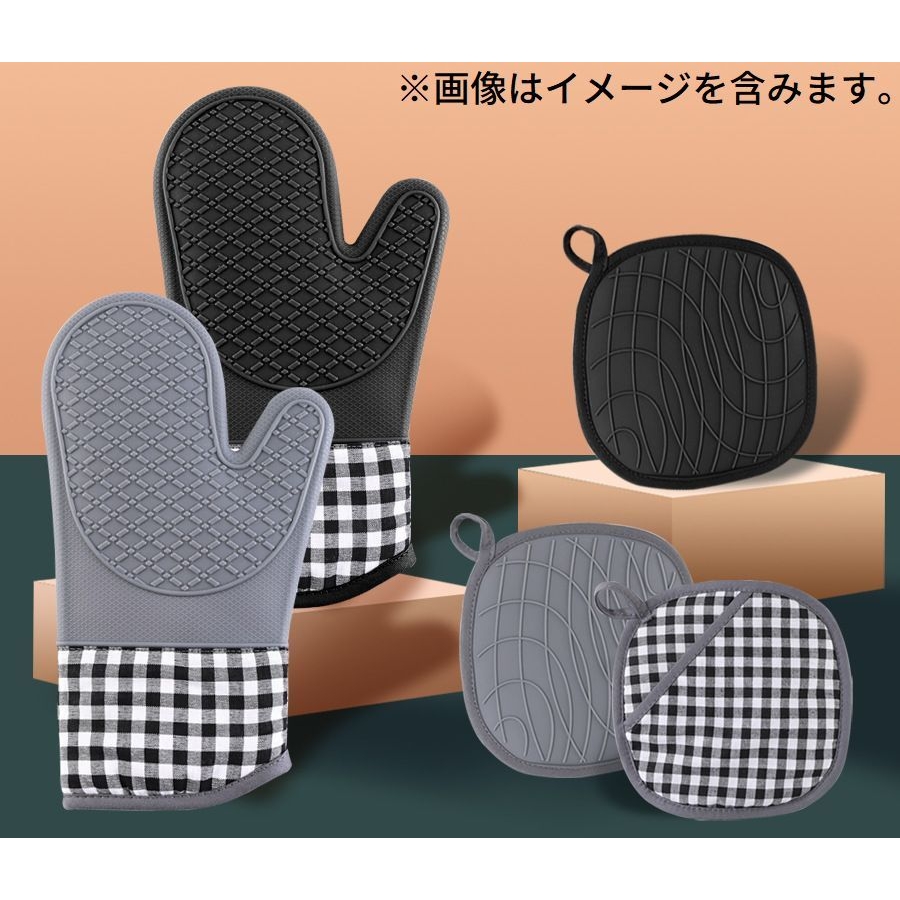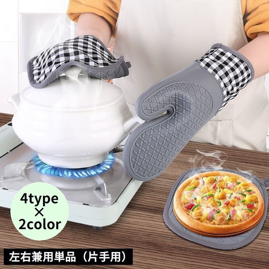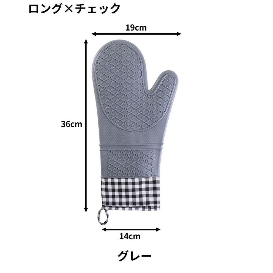 【ロング×チェック】鍋つかみ オーブンミトン キッチングローブ