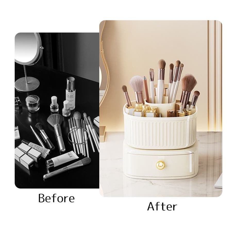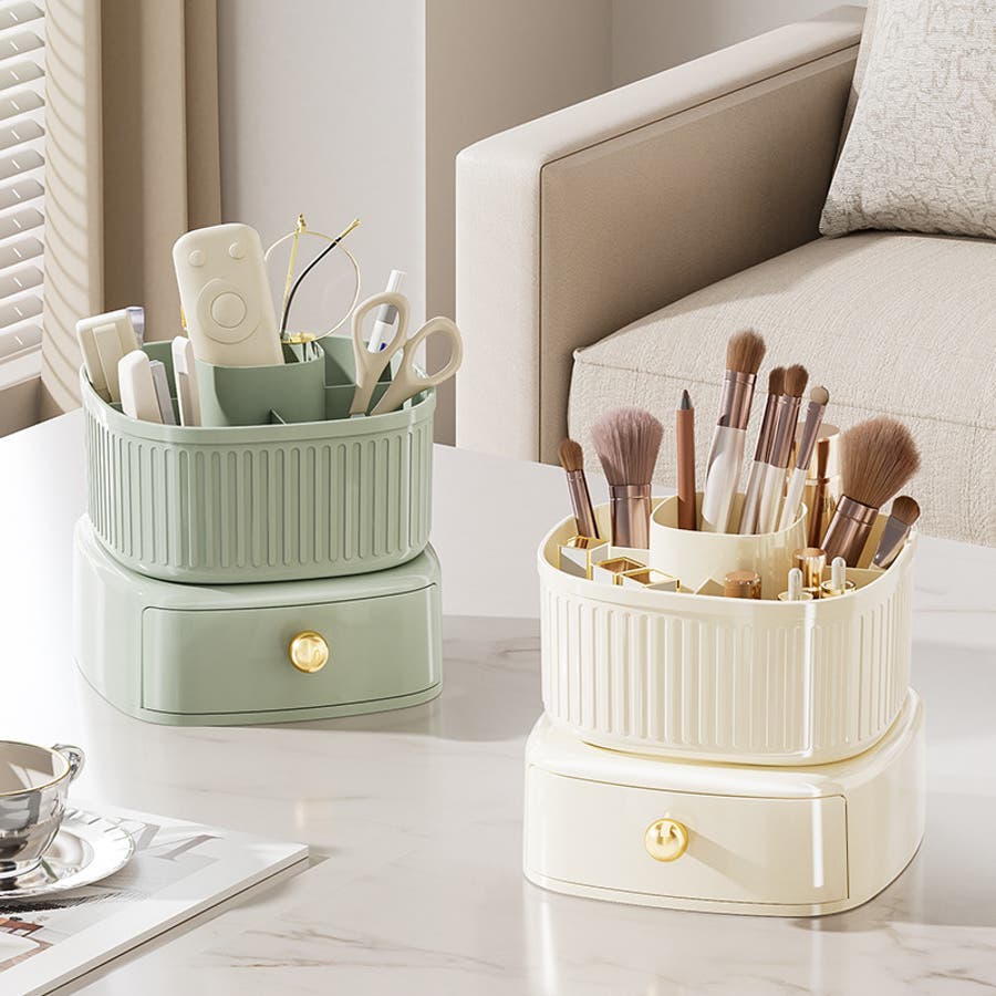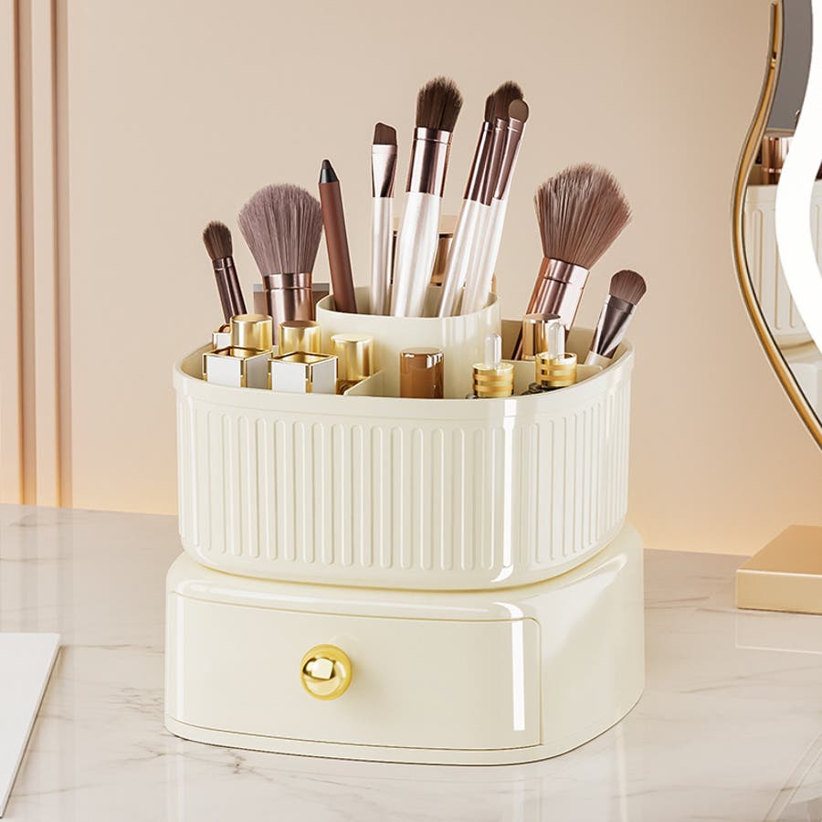 360度回転可能の引き出し&仕切り付きメイクボックスです。