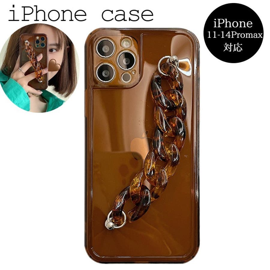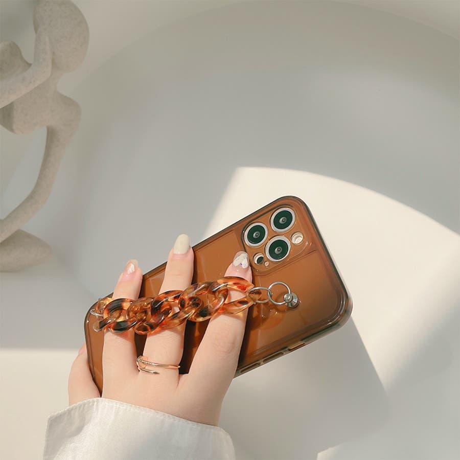 大きめサイズのiphoneもおしゃれなチェーンストラップで落下防止◎