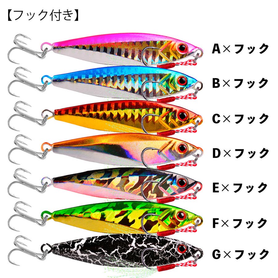 重さが3種類×フック付き・フックなしの2タイプからお選びいただけます。