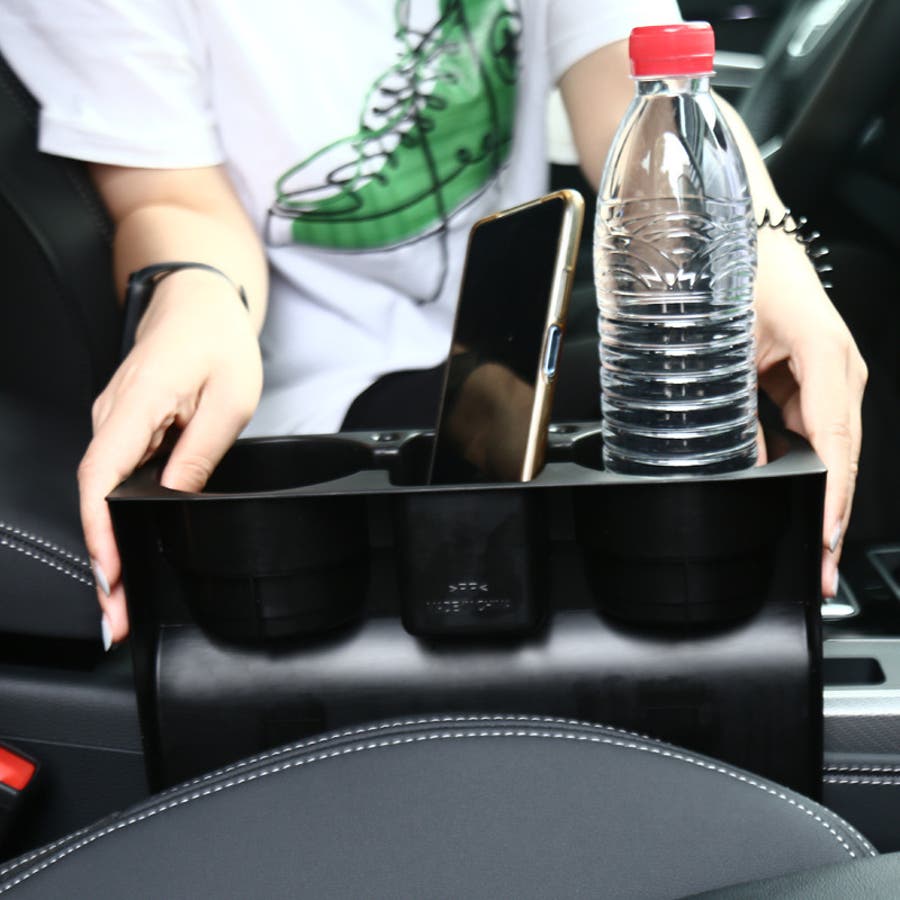 ドリンク2本と、中央部分にはスマホなどの小物も収納可能◎
