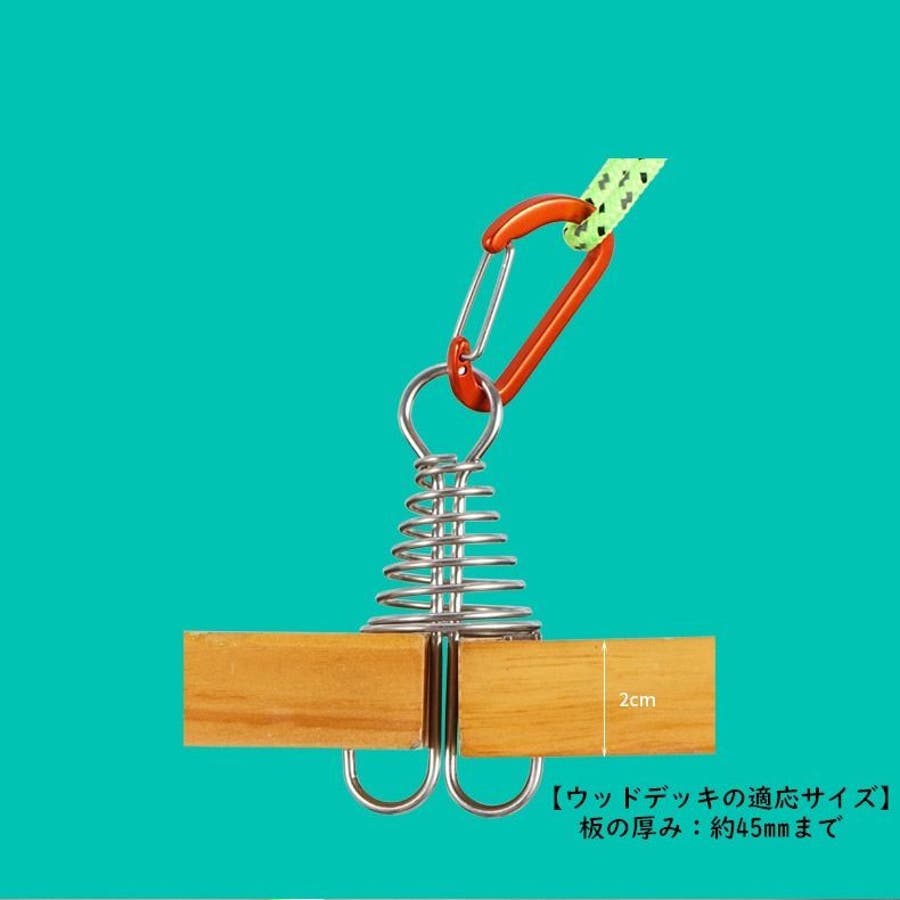 通常のペグを使えないウッドデッキにフックをかける場所を簡単に設置できて便利◎