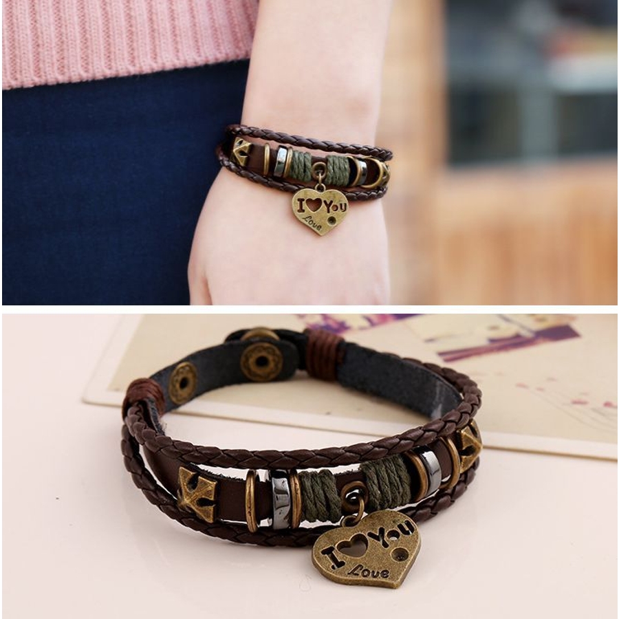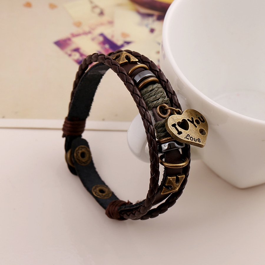 ブレスレット レザーブレスレット ハートモチーフ