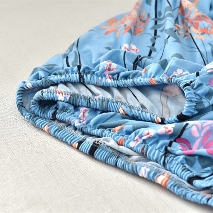 荒い素材のカバーだとボロボロにされる為ベージュに白い花のカバーを購入しましたが、良く伸びてツルッとした素材なので今のところ爪研ぎされていません。画像では黒に見える花の茎がブルーでしたが可愛いくて気に入りました。