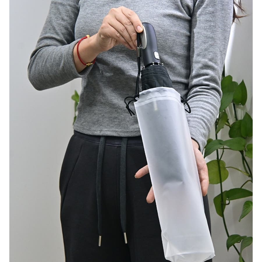 濡れた折りたたみ傘をさっと入れることができ、紐付きで持ち運びにおすすめです♪
