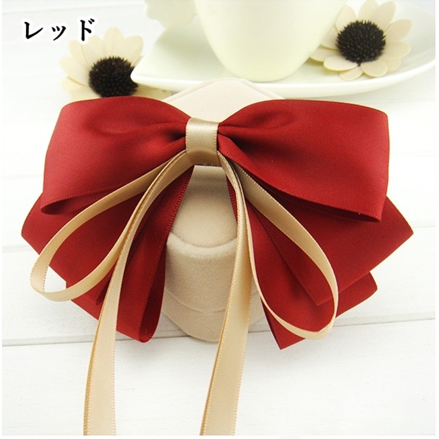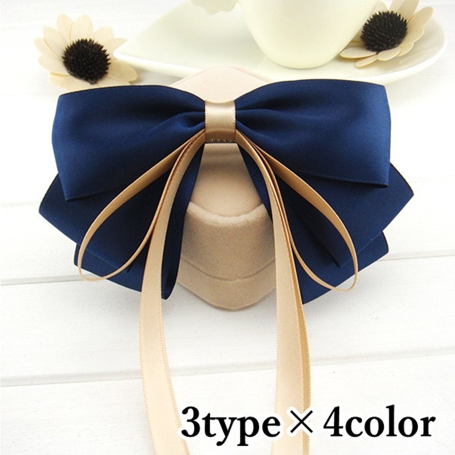 とても質感のある布材質の蝶結びと垂れる二重のリボンが華麗な女性の魅力を演出します。