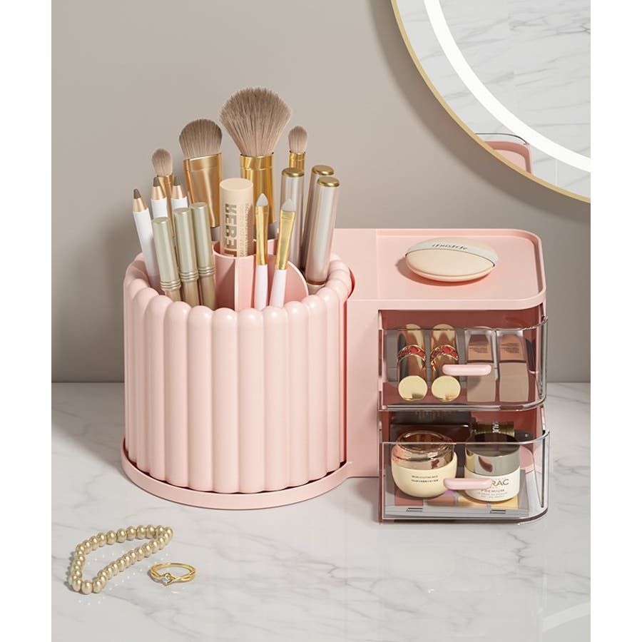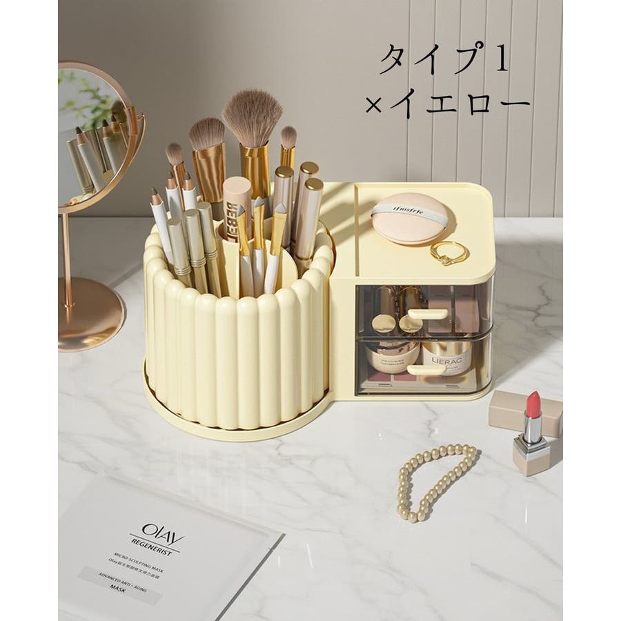 一緒にコスメも収納できる引き出し付きタイプと