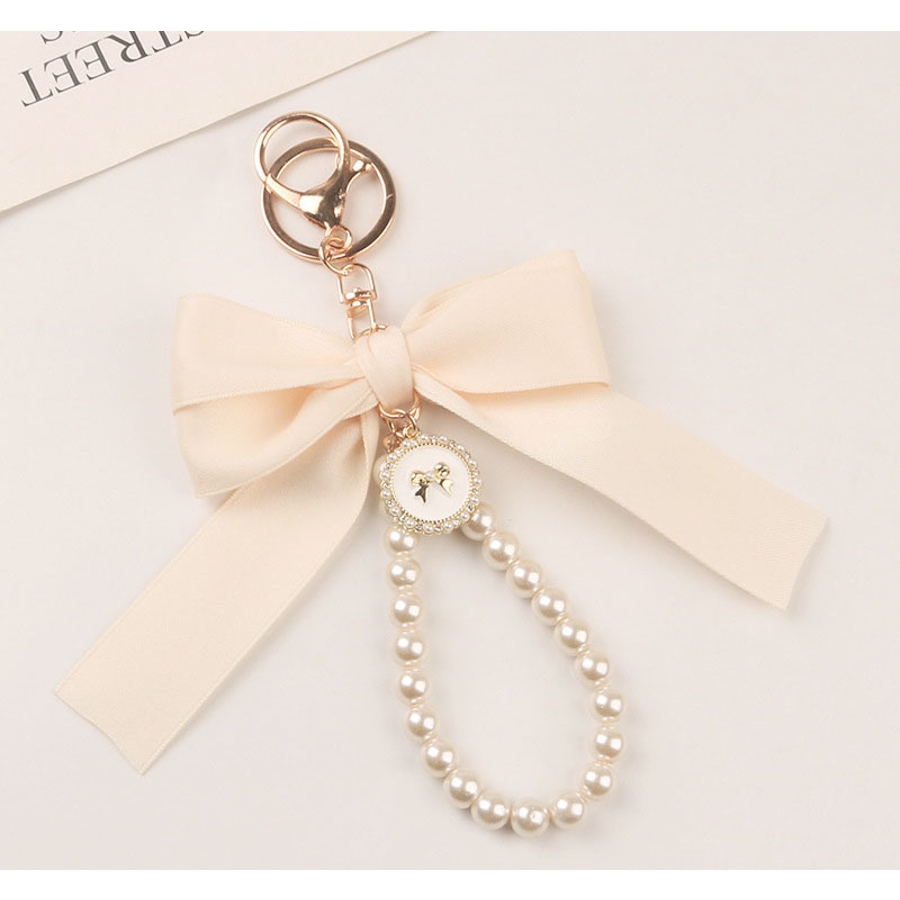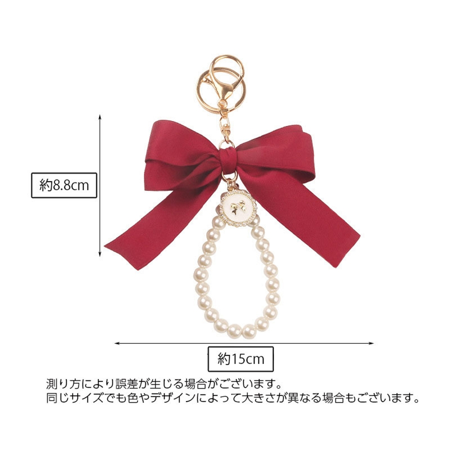 フェイクパールのハンドストラップ付きで用途も多彩に♪