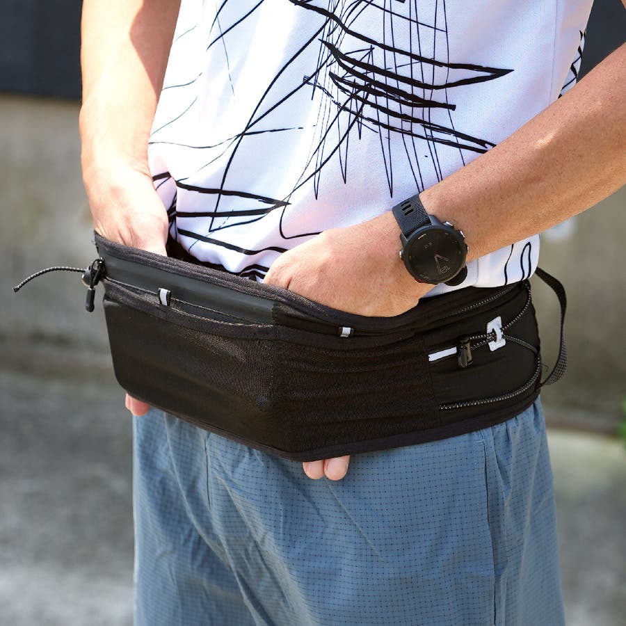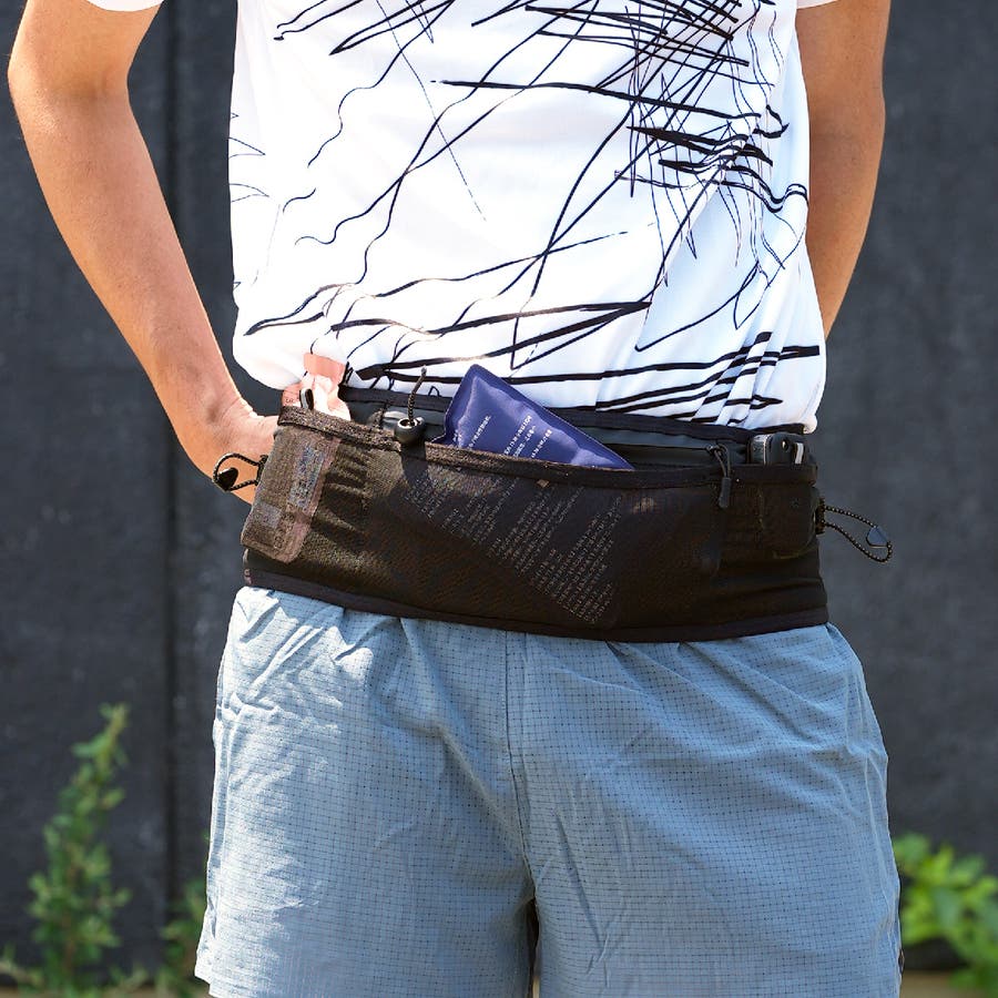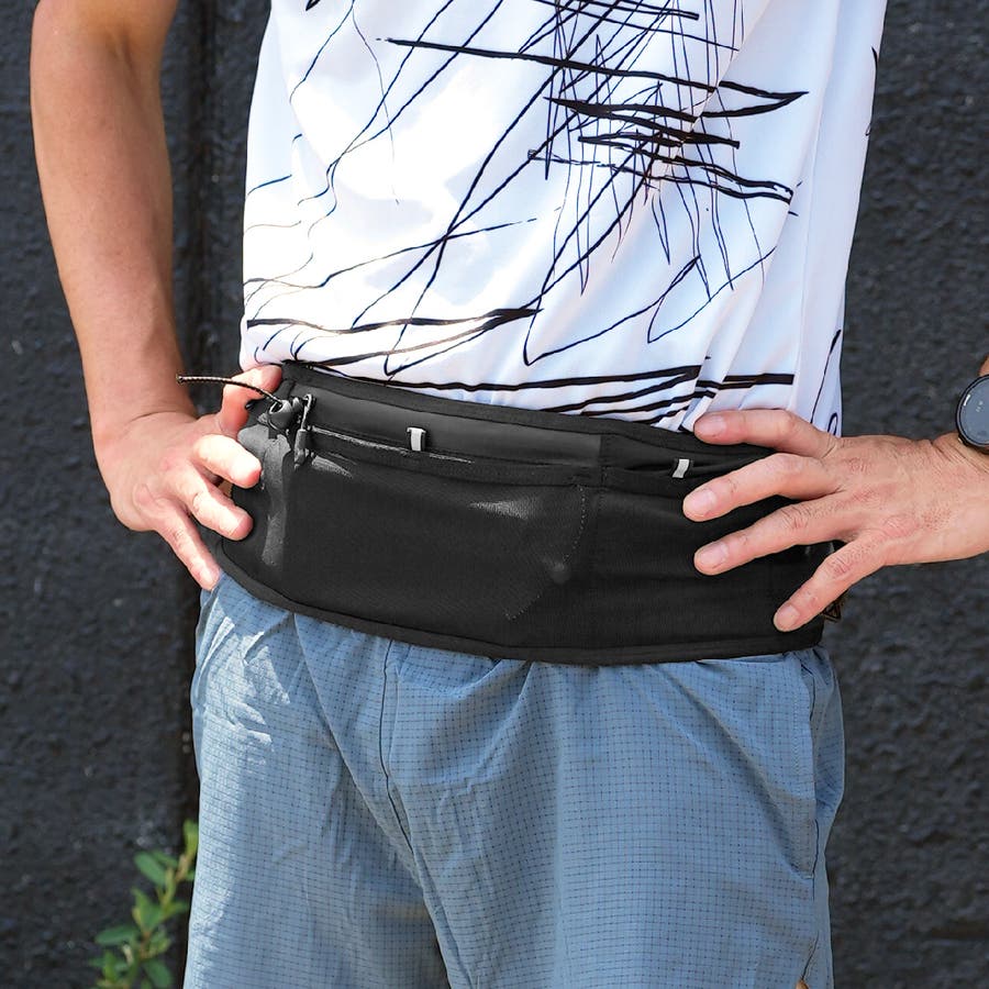 マラソン トレイルランのために設計された、揺れにくく軽量で収納力を備えた腹巻タイプのランニングポーチにアンケートで声を頂いた「スマホ用防水ポケット」を携えて新登場しました。