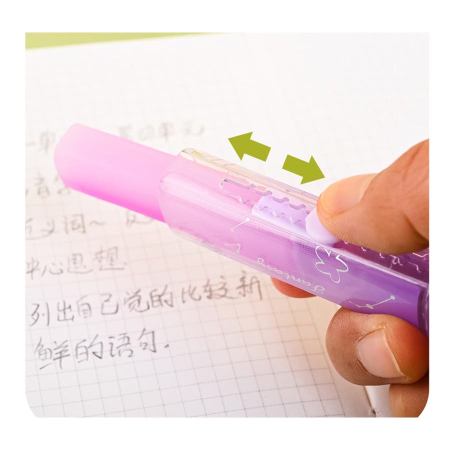 サイドのボタンを押したまま上下にスライドさせると、消しゴムを繰り出せます☆