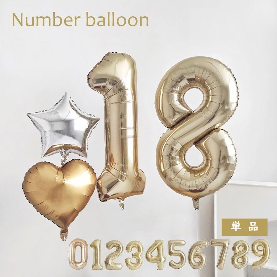 ゴールドカラーのゴージャスなナンバーバルーン。