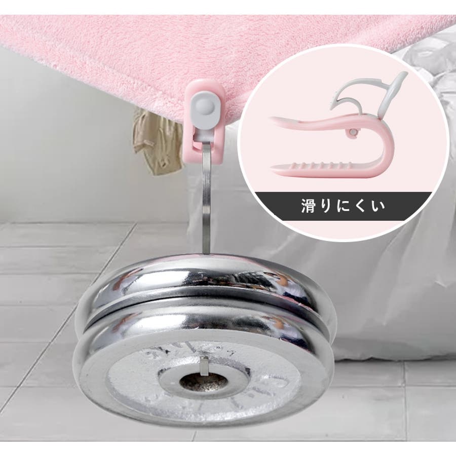 上から挟むだけでカバーや毛布とズレるのを防いでくれる、便利なアイテムです。