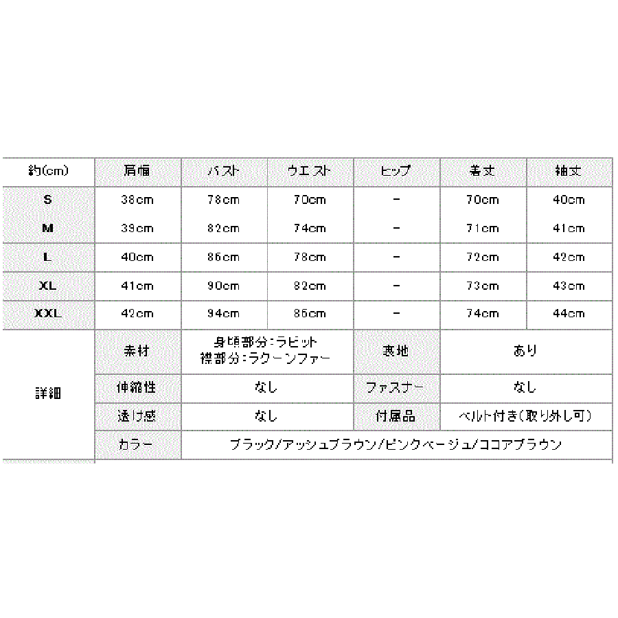 身頃部分:ラビット 襟部分:ラクーンファー |