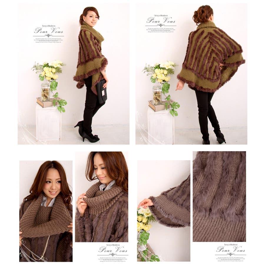 極上の肌触りとリュクスな温もりを与えてくれるラッビトファーを織り込んだ最旬モードなニットケープ。