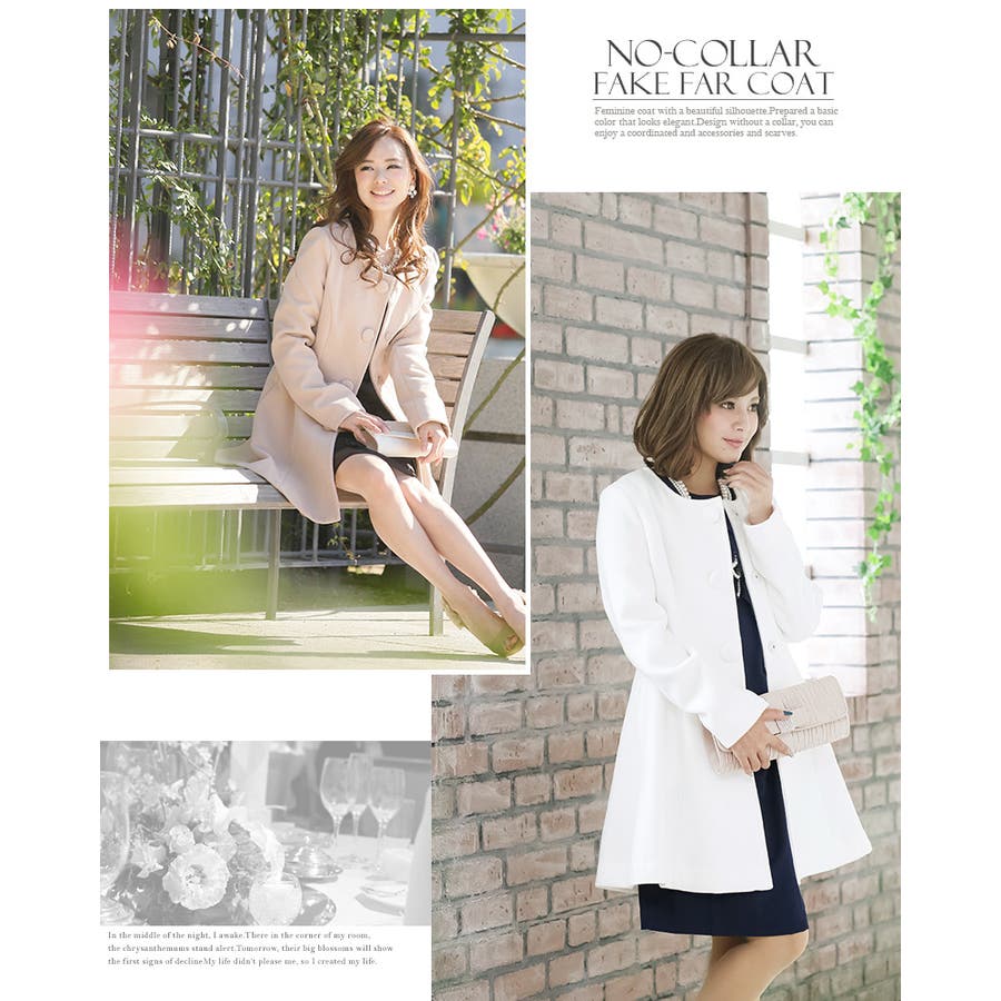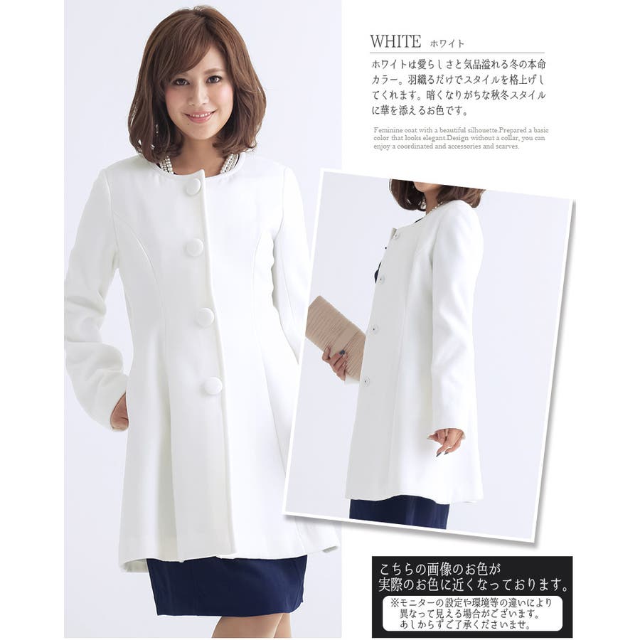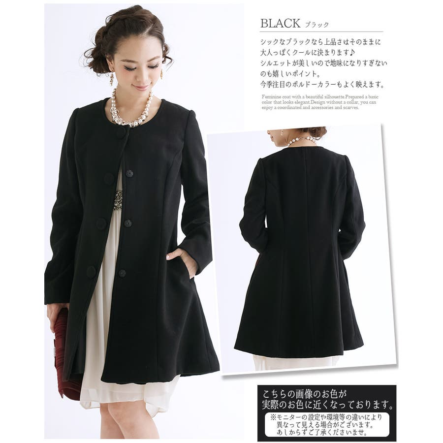 きちんと感のあるノーカラー0は、アクセサリーや巻き物のコーディネートが楽しめ、