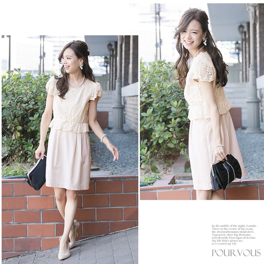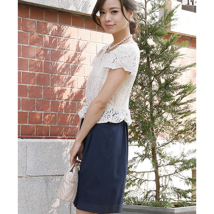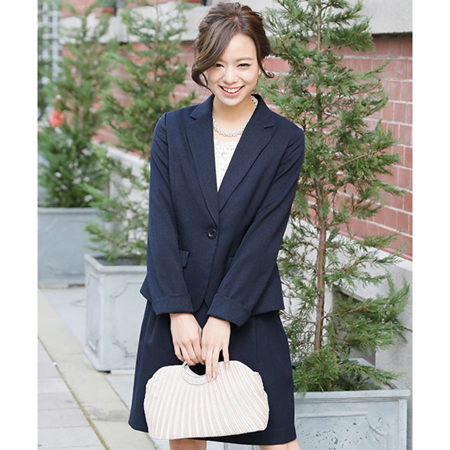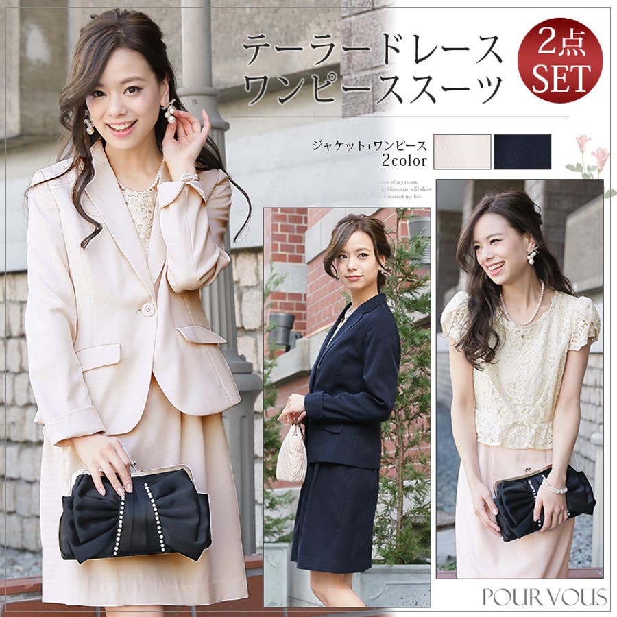 ☆ベーシックなテーラードジャケットとレースを使用したワンピースのセットスーツ。