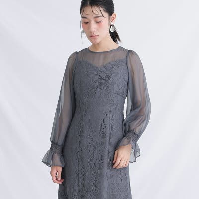 | レース×オーガンジー切り替えワンピース【651231638】 |
