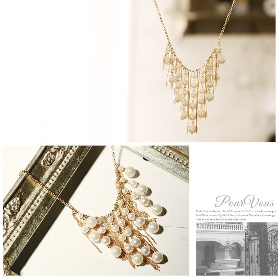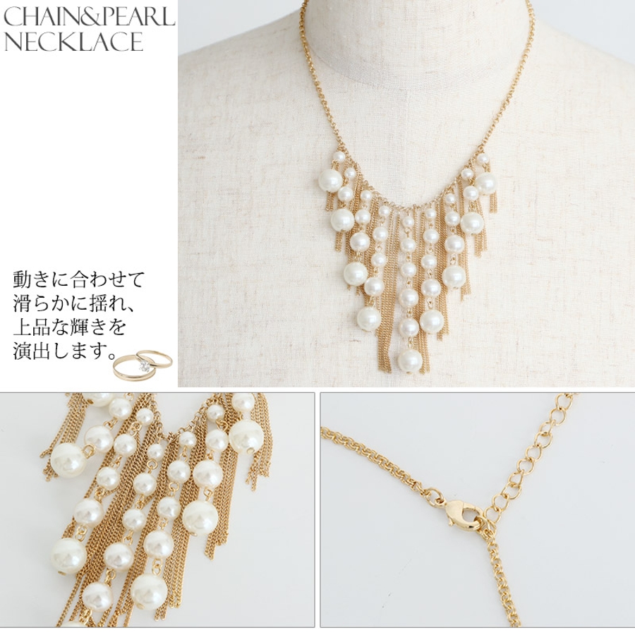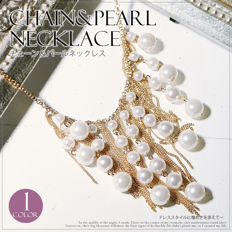 ☆チェーンとパールを組み合わせた存在感たっぷりのネックレス。