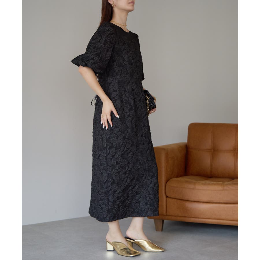 上品で華やかなボタニカルなフクレ織り生地を使用してモードな仕上がりにしました。
