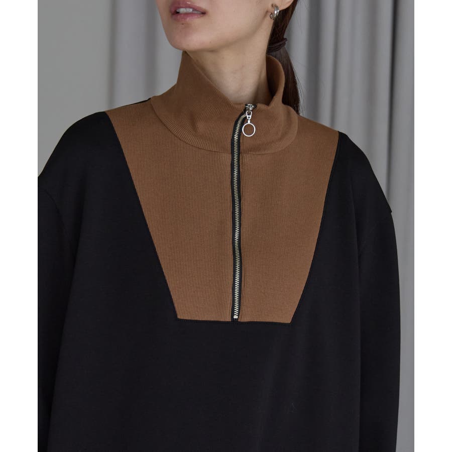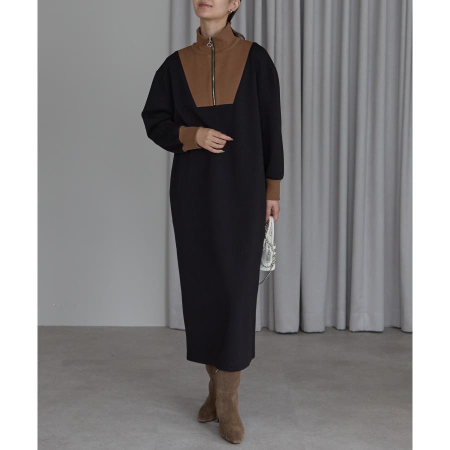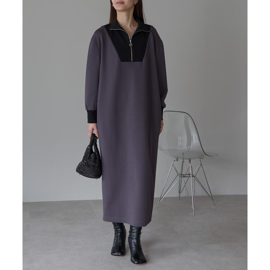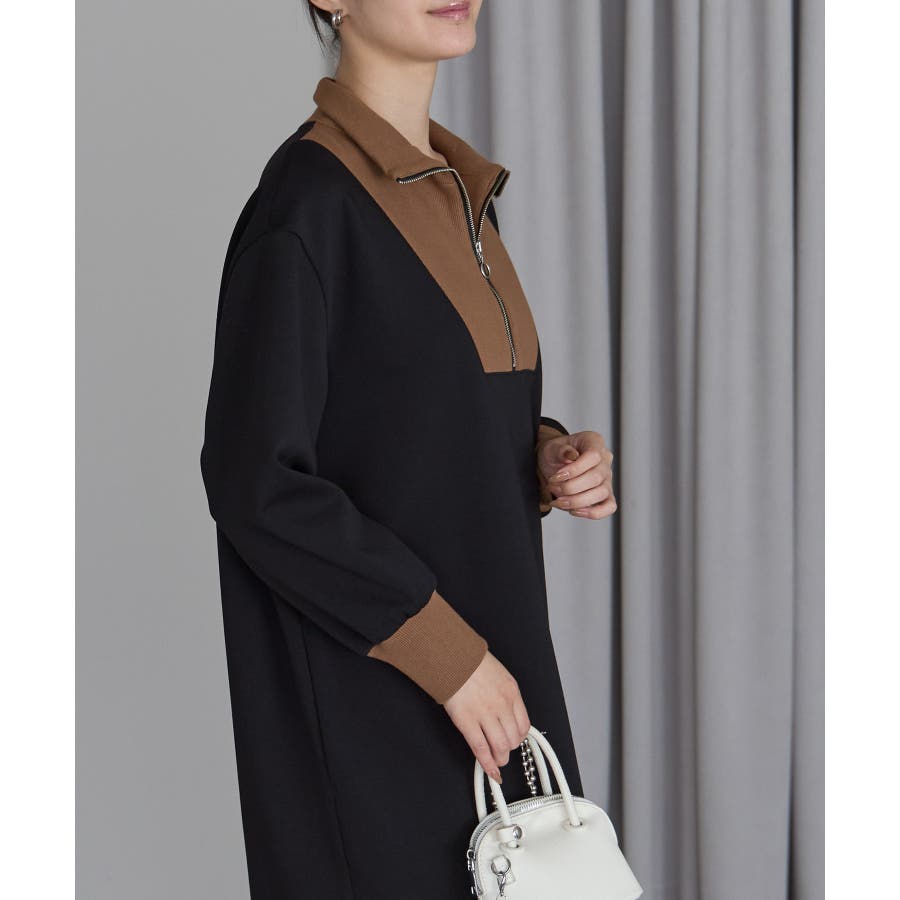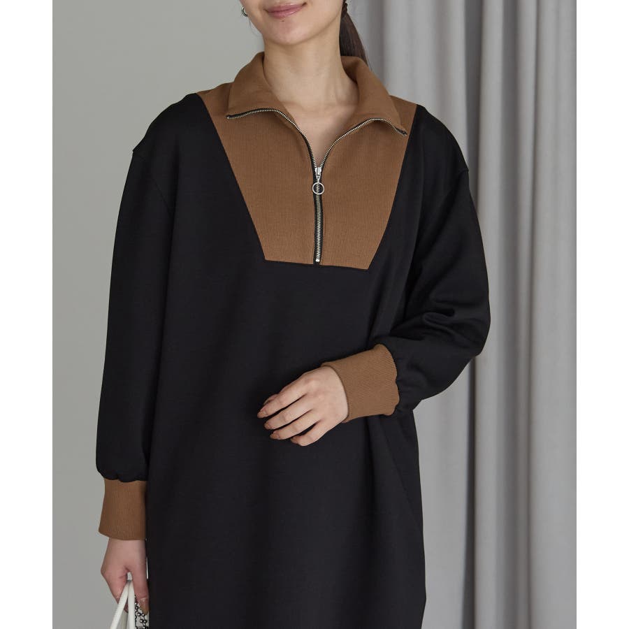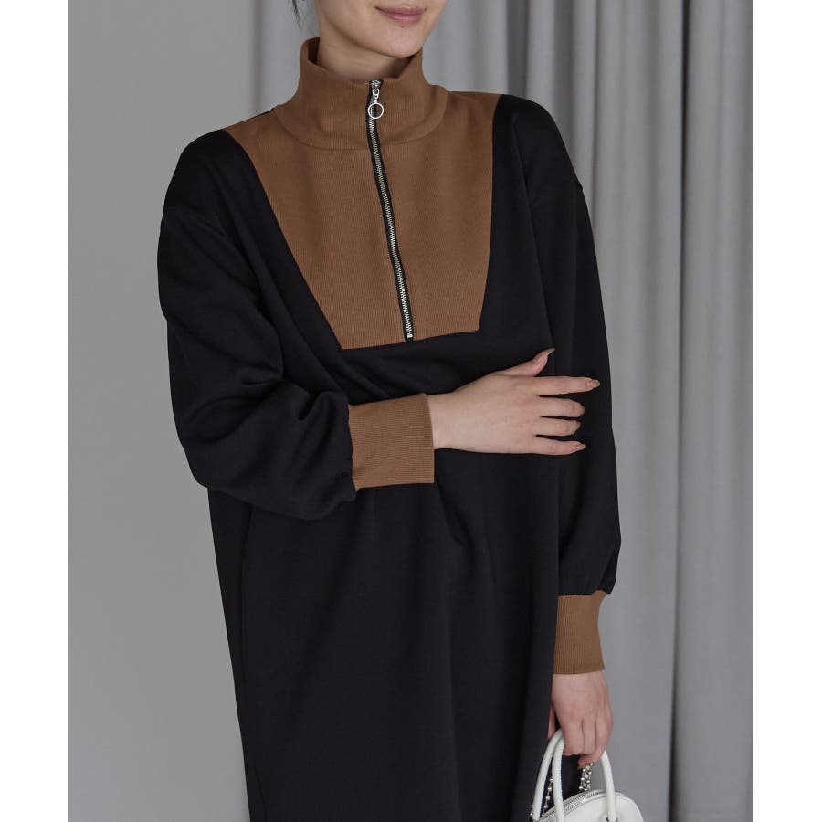 配色ジップアップカットソーワンピース