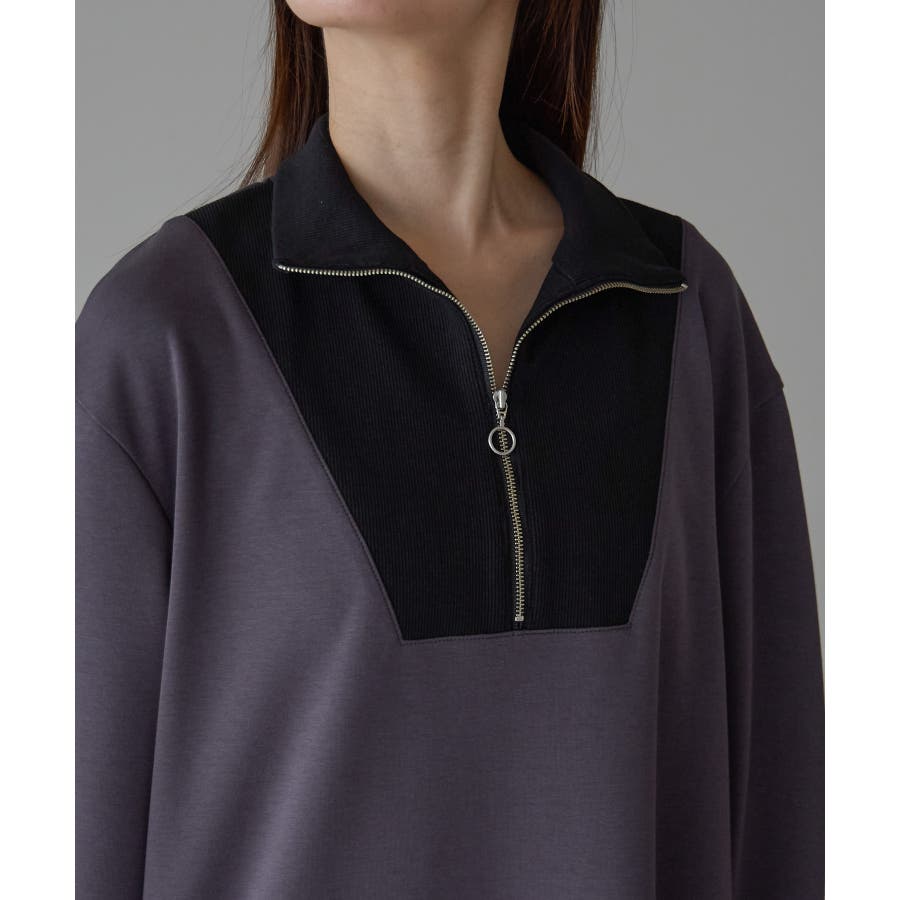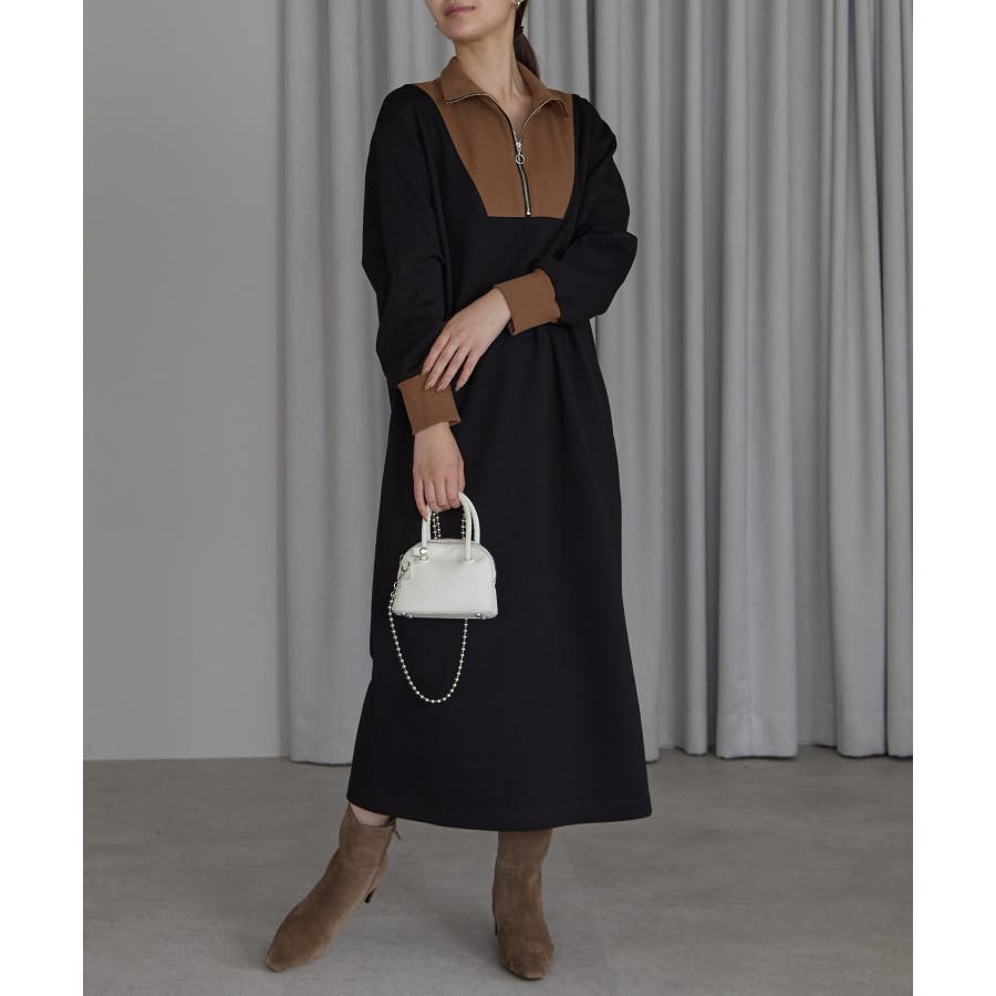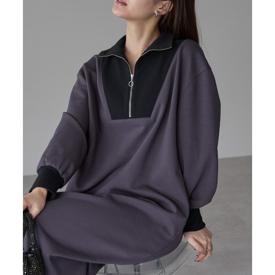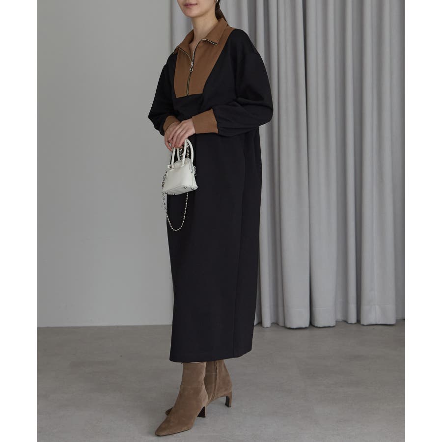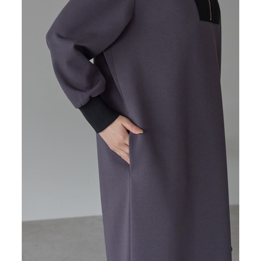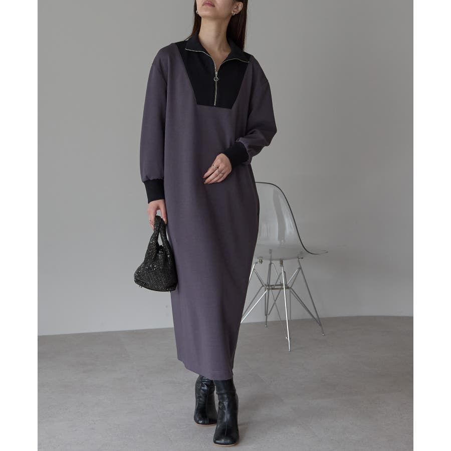 配色ジップアップカットソーワンピース