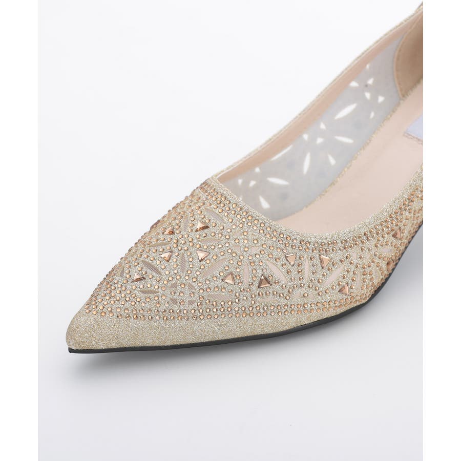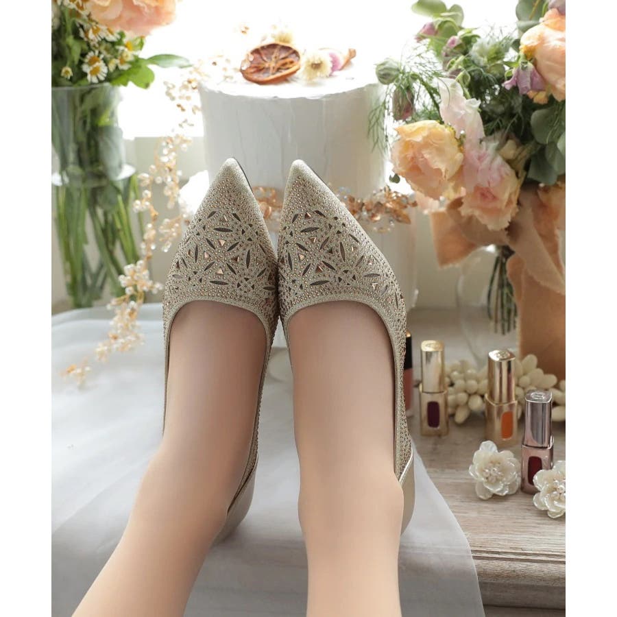 幾何学模様にレザーカットされた生地にスパンコール風なビジューを散りばめた華やかなパンプスをリリースしました。