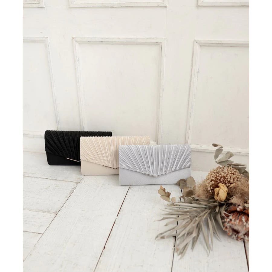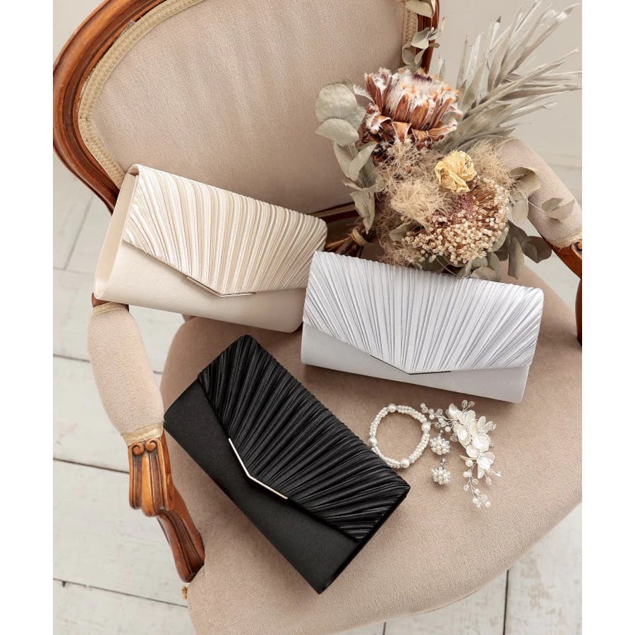 3WAYサテン プリーツパーティークラッチバッグ