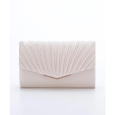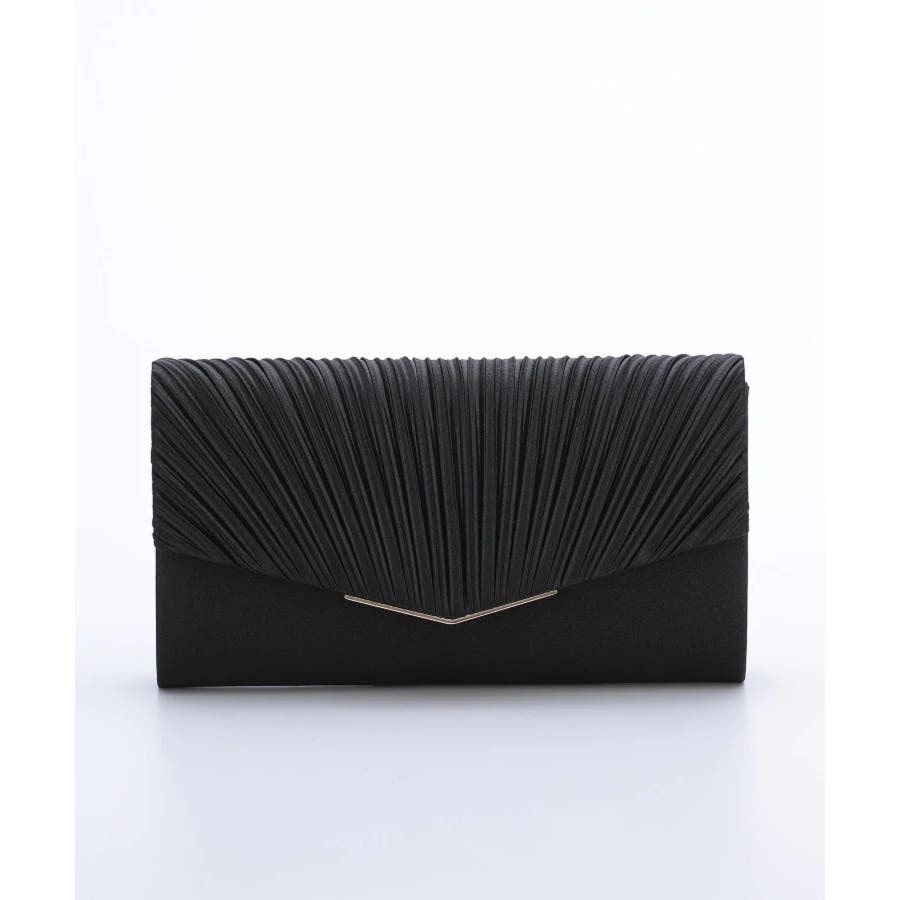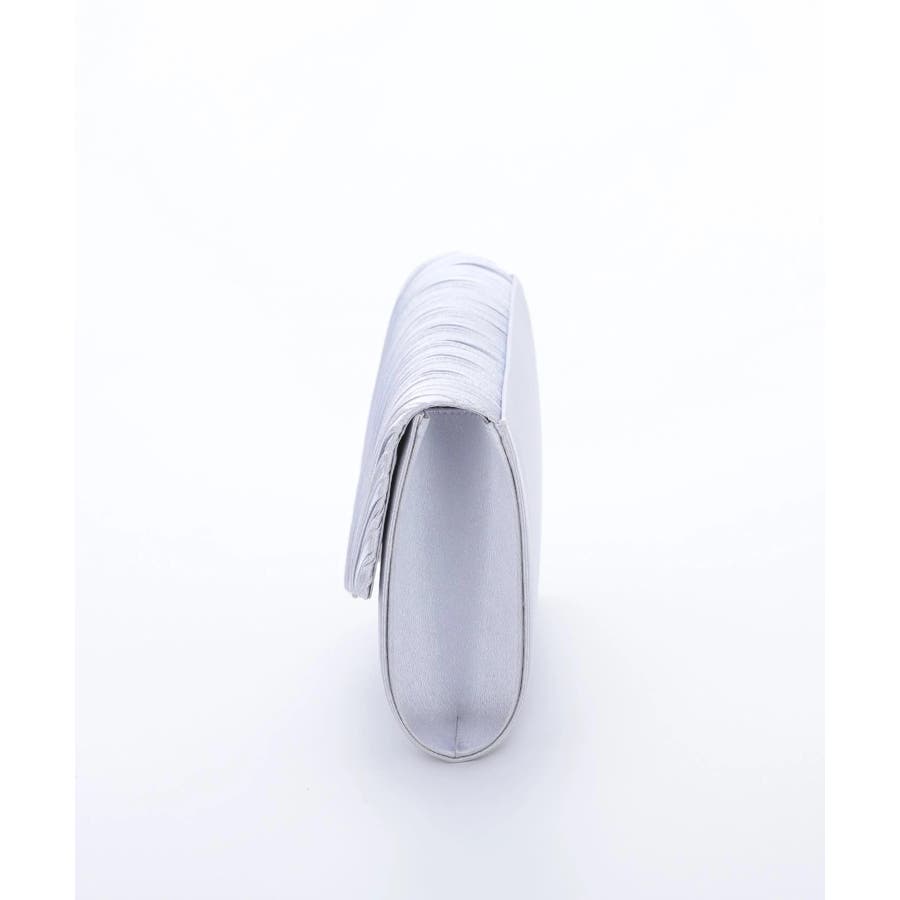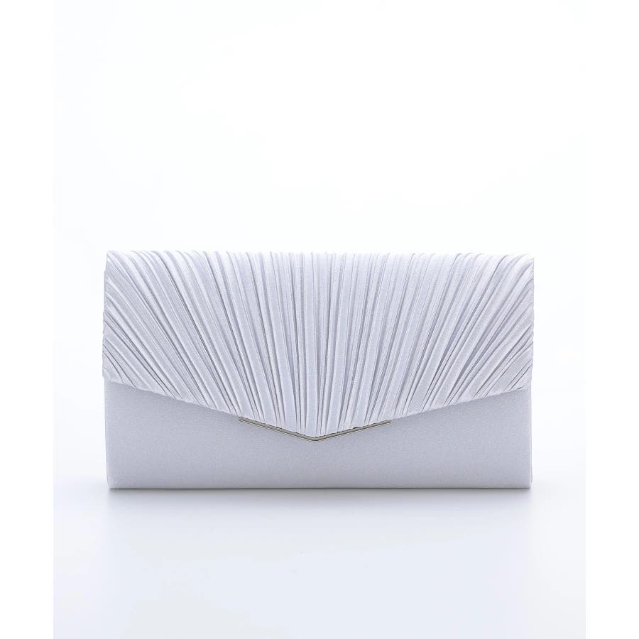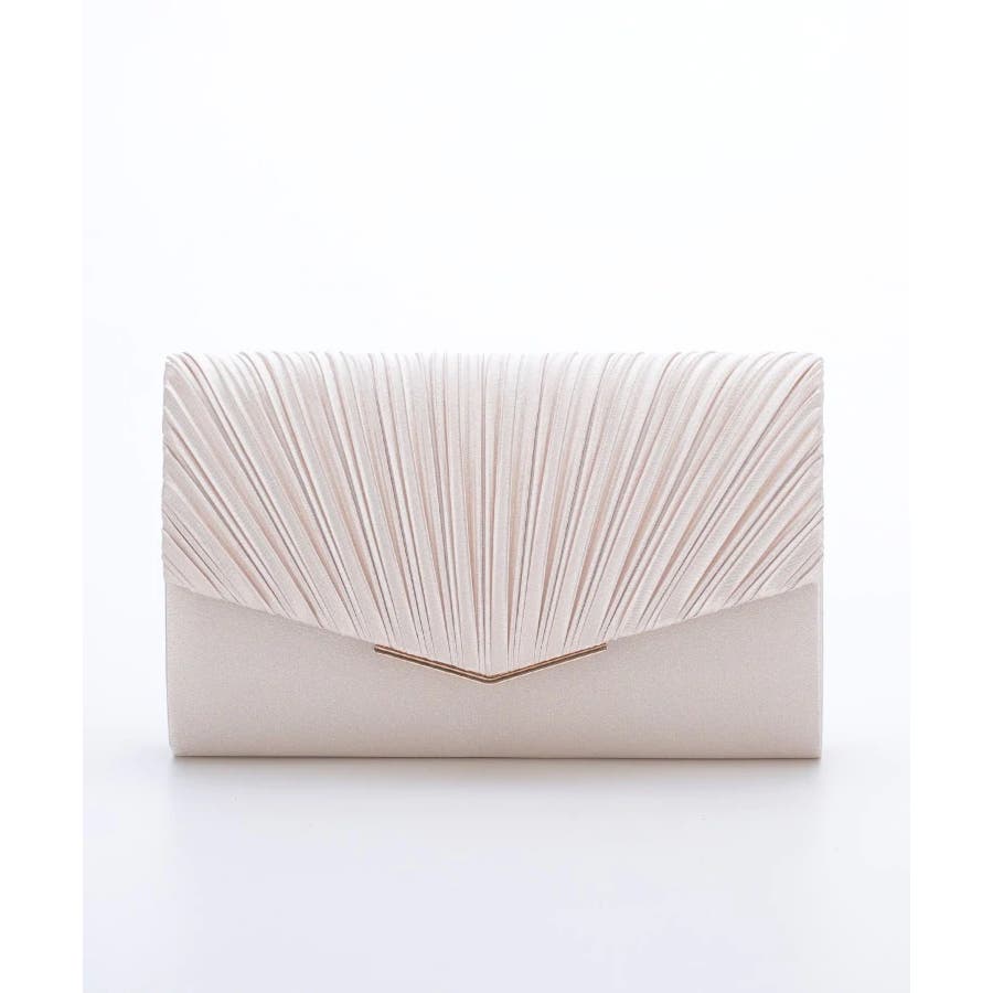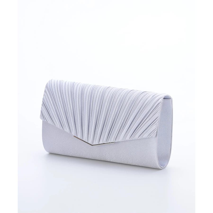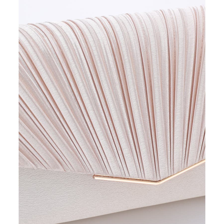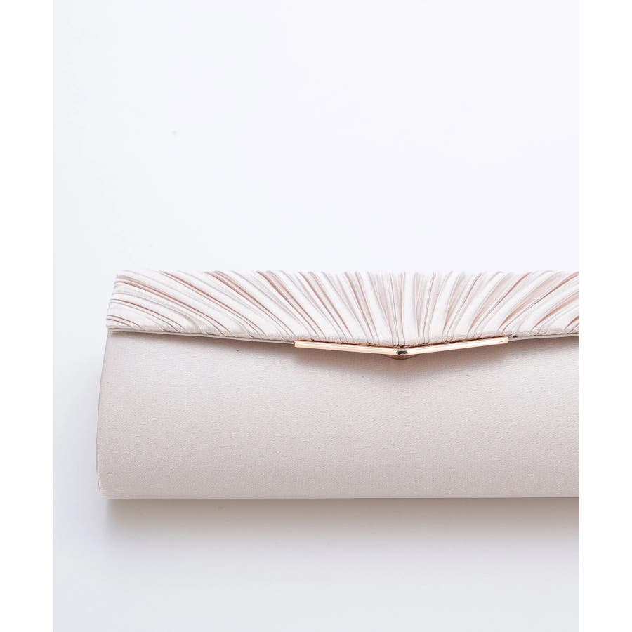 プリーツ加工を施した光沢感のあるサテン生地に華奢なゴールドの金具が清楚でエレガントな印象に仕上げてくれる。