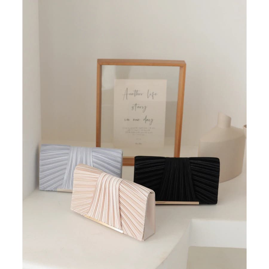 3WAYサテンプリーツ切り替えパーティークラッチバッグ