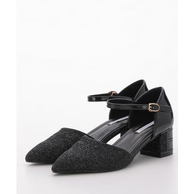 グリッターチャンキーヒールパンプス