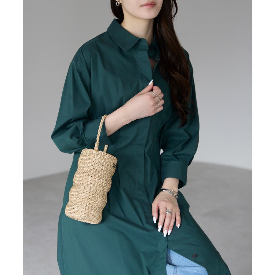前開きなのでレイヤードでハオリ感覚で着用出来てコーディネイトの着回しも広がる便利で大人可愛いシャツワンピースです。
