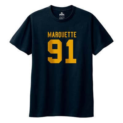 都市名の【MARQUETTE】ロゴとナンバリングをフロントにプリントした、