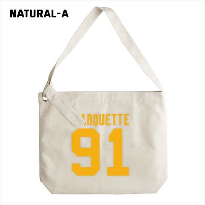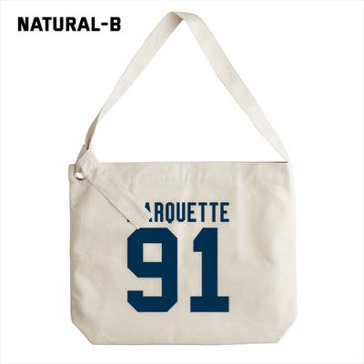 ・ロゴとナンバリングをプリントしたアメカジ感あふれる鞄
