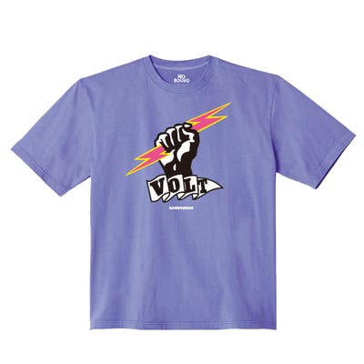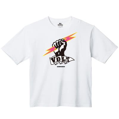 ・雷を掴む手が特徴的なイラストが映えるプリントデザイン