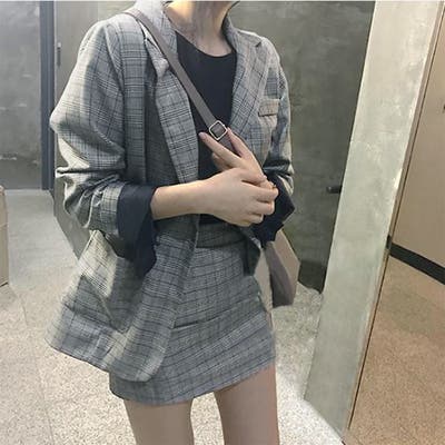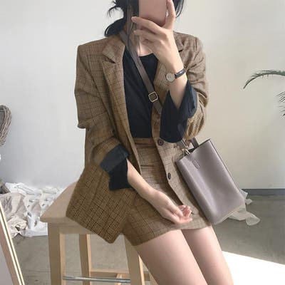 春/夏/秋/冬/春夏/秋冬/春服/夏服/秋服/冬服/韓国/韓国ファッション/オルチャン/レディース/人気/プチプラ/フェミニン/チェック/グレンチェック/セットアップ/スーツ/ジャケット/ミニスカート/オフィスファッション/オフィスカジュアル