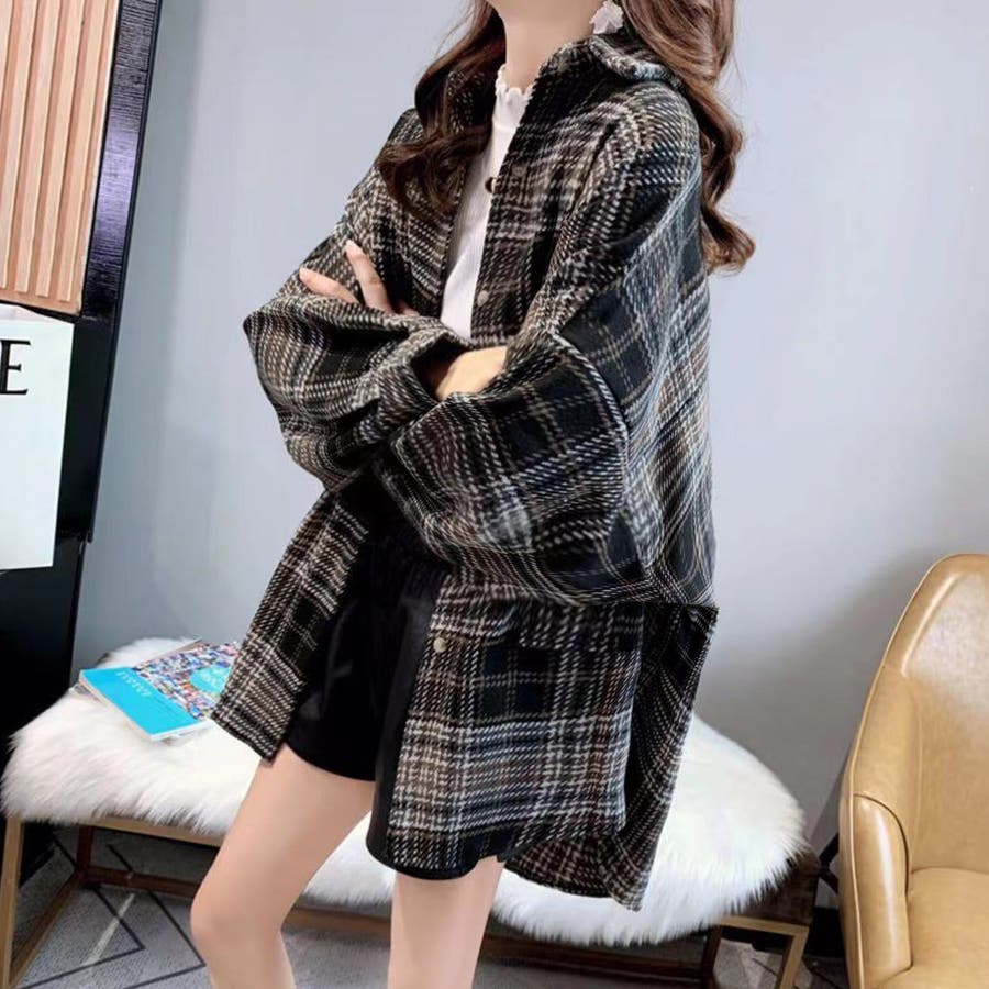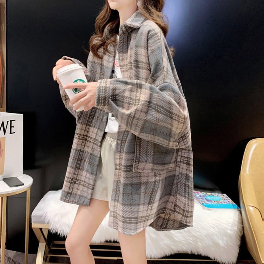 チェック柄オーバーサイズシャツアウター