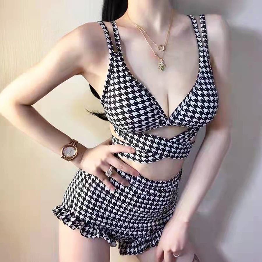 春/夏/春夏/春服/夏服/韓国/韓国ファッション/オルチャン/レディース/人気/カジュアル/プチプラ/水着/スイムウエア/ビキニ/ハイウエストビキニ/ハイウエスト水着/リボン/クロス/千鳥柄/千鳥格子/ガーリー/フリル/カジュアル水着/レトロ水着/ガーリー水着/ハイウエスト/ハイウエスト水着/ママ水着/ヘルシー/セクシー/セクシー水着/胸元セクシー/水着体型カバー/へそ出し/大人/大人かわいい/レジャー/ビーチ/海/フェス/200361