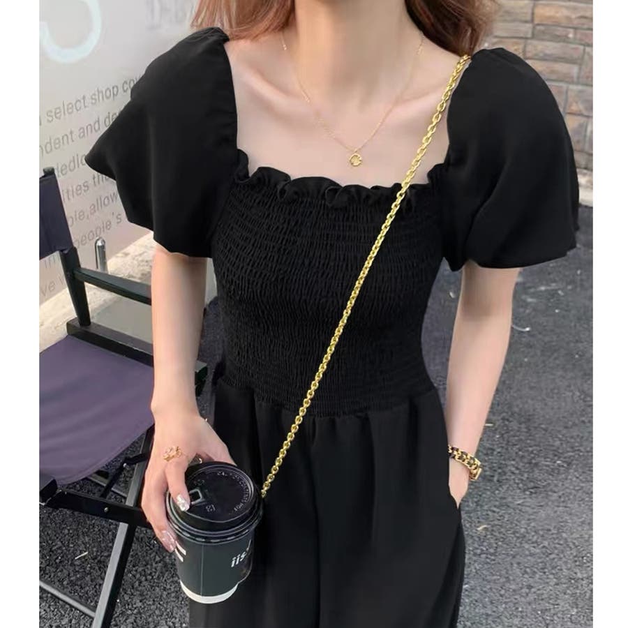 スクエアネックボリュームスリーブオールインワン