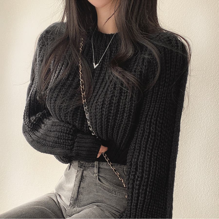 秋/冬/秋冬/秋服/冬服/韓国/韓国ファッション/オルチャン/レディース/人気/プチプラ/トップス/ニットトップス/短丈/短丈ニット/ショート丈/ショート丈トップス/ショート丈ニット/クロップド丈/へそ出し/ローゲージ/ざっくりニット/長袖/脚長/スタイルアップ/体型カバー/韓国っぽ/レトロ/シンプル/ストリート/200736