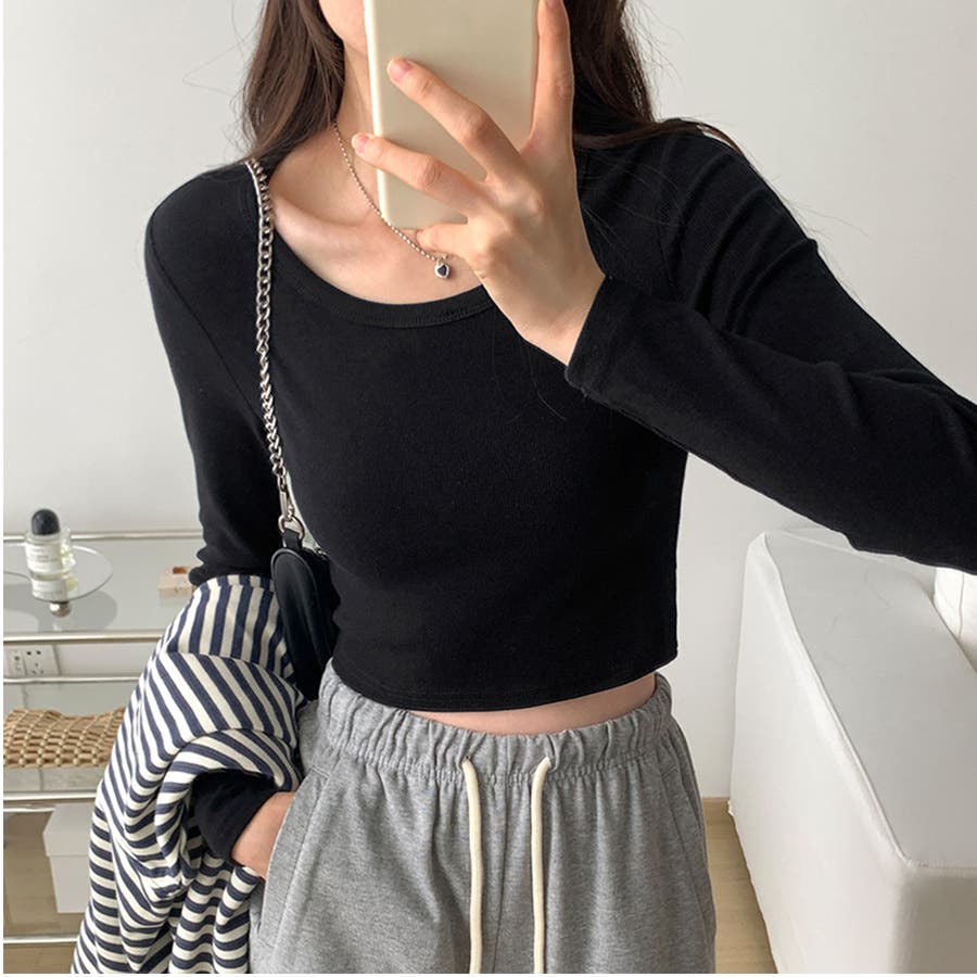 シンプルクロップド丈ロンT
