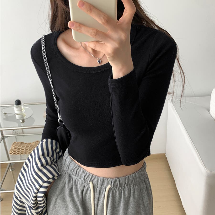 春/夏/秋/春夏/春服/夏服/秋服/韓国/韓国ファッション/オルチャン/レディース/人気/カジュアル/プチプラ/トップス/無地/ベーシック/ショート丈トップス/ショート丈/短丈/クロップド丈/へそ出し/ハイウエスト/デコルテ/鎖骨/セクシー/ヘルシー/セクシー胸元/谷間見せ/長袖/タイト/リブ/リブニット/サマーニット/200765