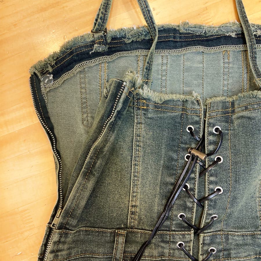 秋/冬/秋冬/秋服/冬服/韓国/韓国ファッション/オルチャン/レディース/人気/プチプラ/デニム/ストレッチデニム/加工デニム/デニムワンピース/デニムワンピ/ワンピース/ベアワンピ/コルセット/ビスチェ/ビスチェワンピ/ロングワンピ/デニムロングワンピ/フレアスカート/レースアップ/編み上げ/ストリート/200766