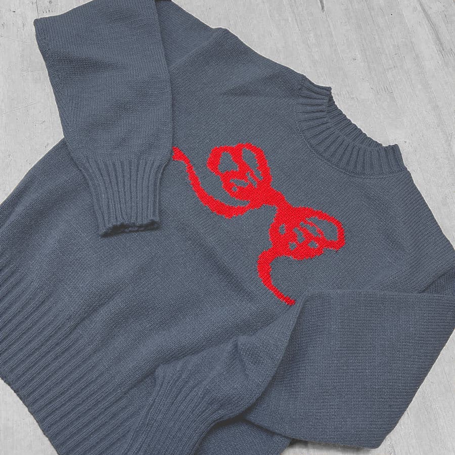 ゆるっと編まれたポリエステルニットは糸によるちくちくが苦手な方も着用出来る、肌当たりやわらかいニット。