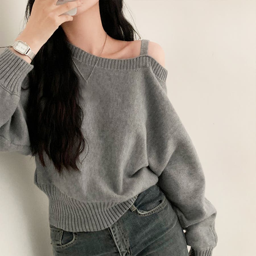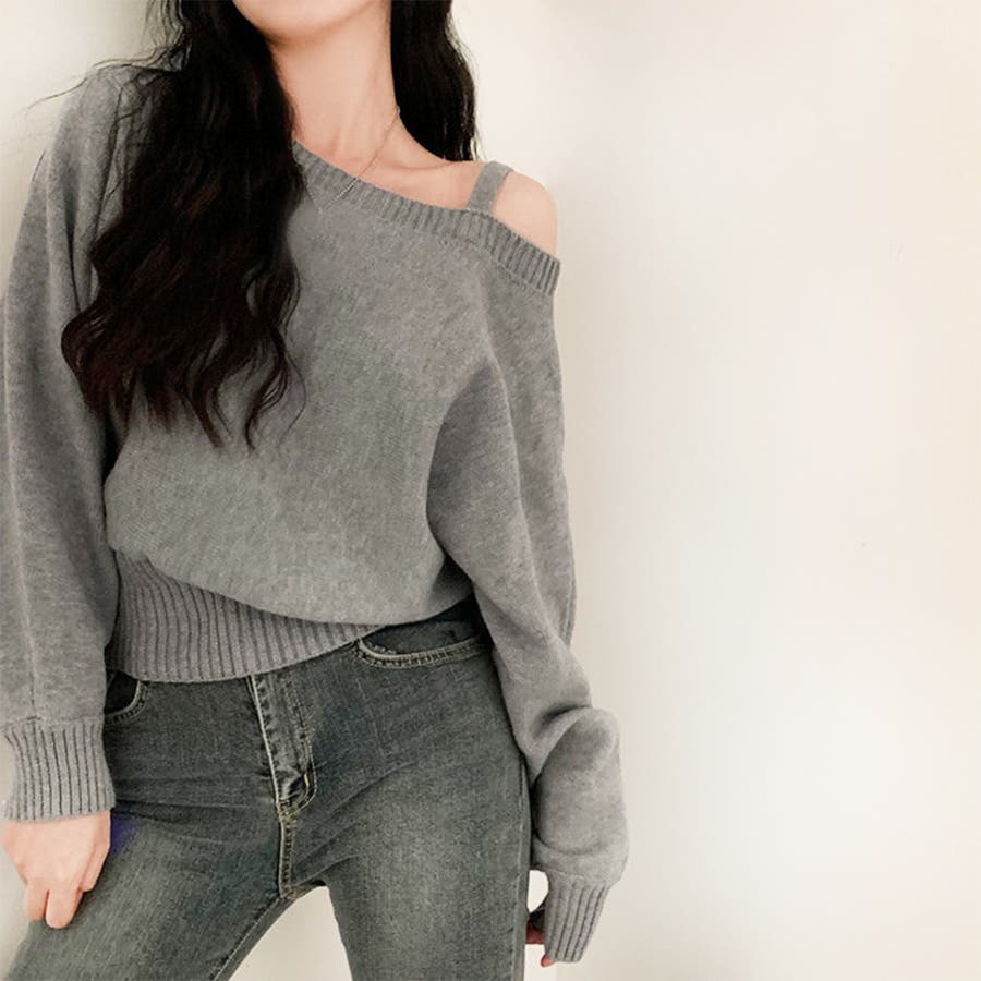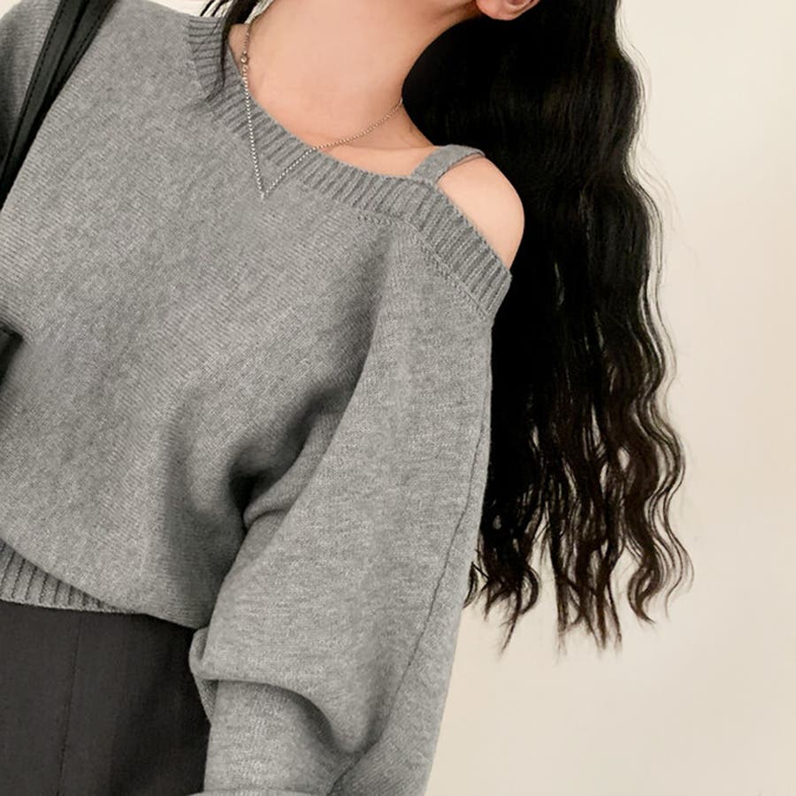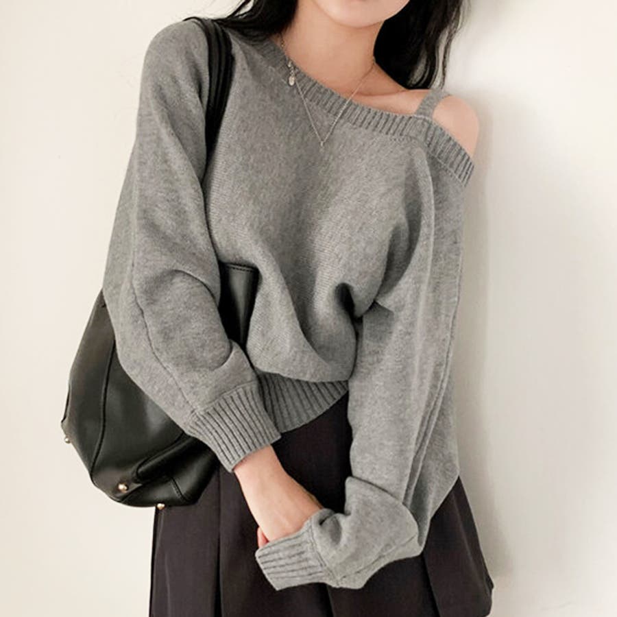 こなれたゆるっとした肩出しが大人かわいいワンショルダーニット新入荷!