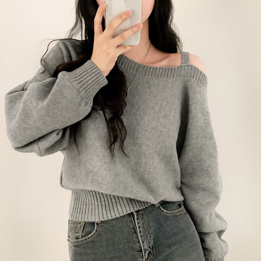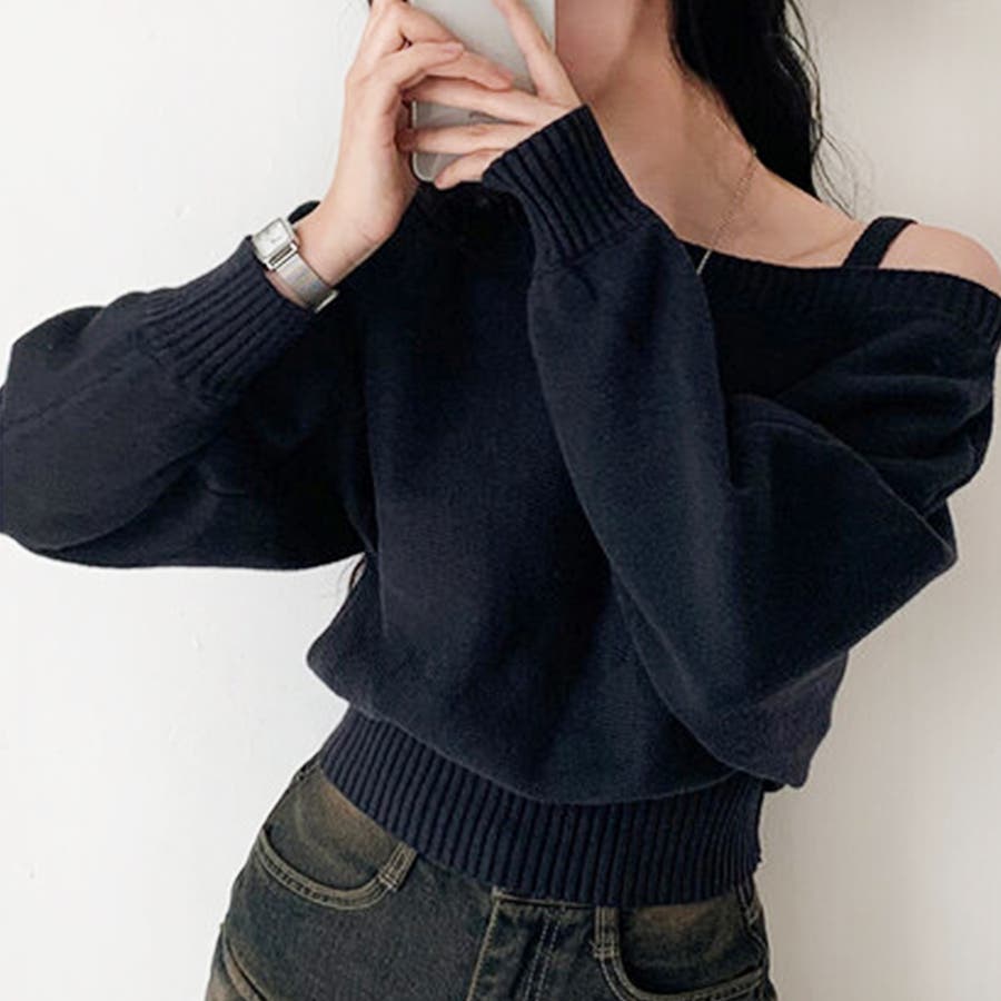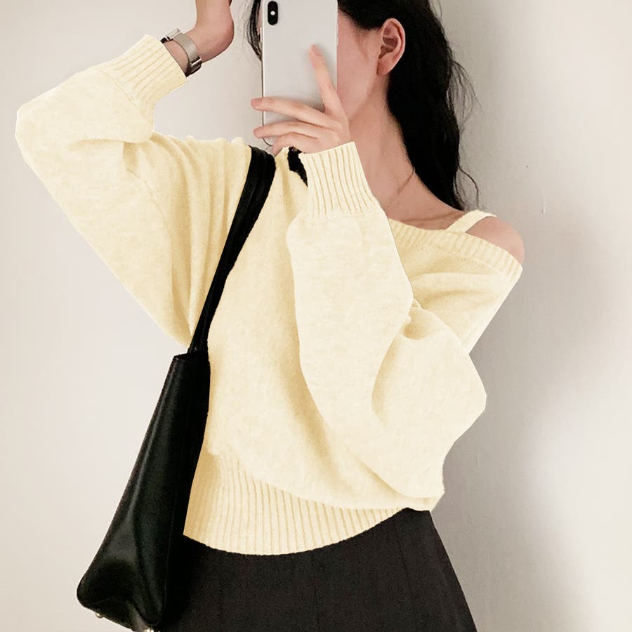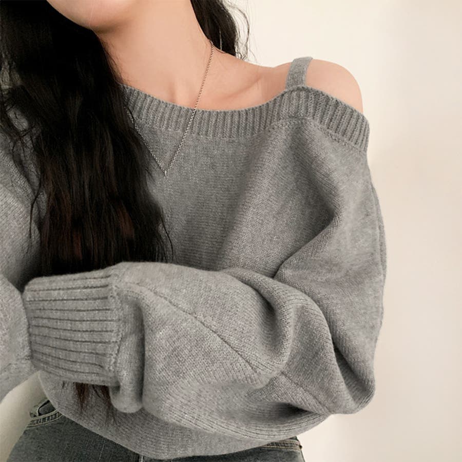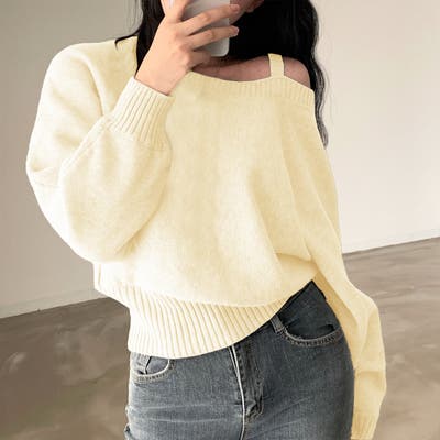 こなれたゆるっとした肩出しが大人かわいいワンショルダーニット新入荷!