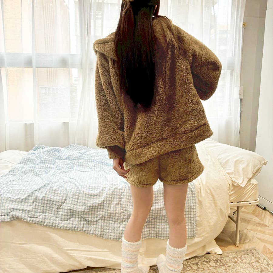 2点セットルームウェア BIGシルエットボアパーカー&ショートパンツ