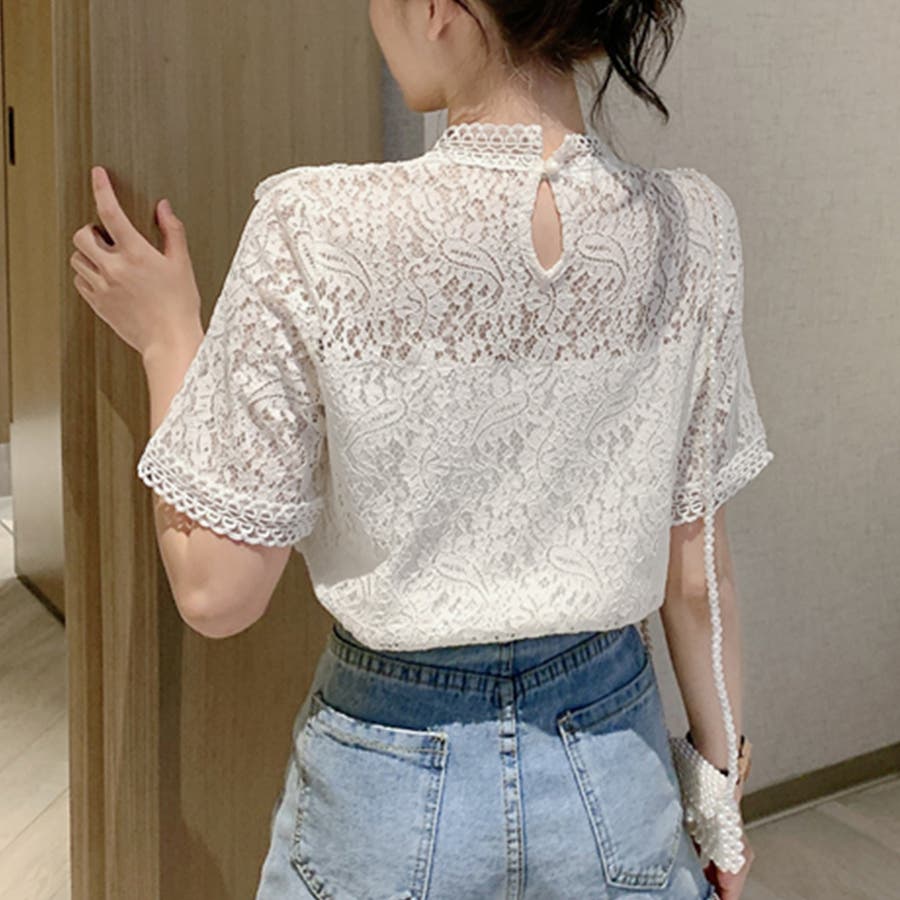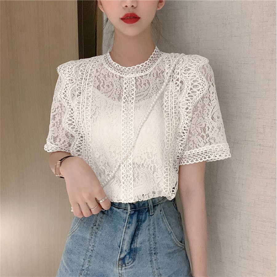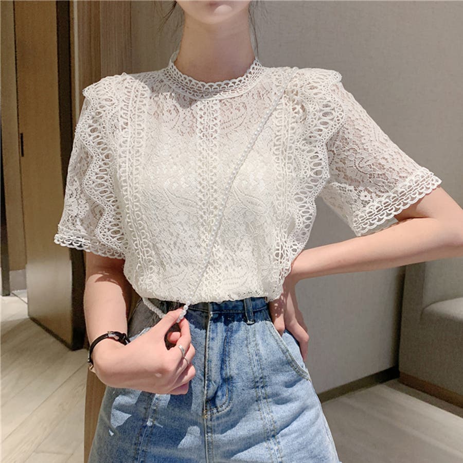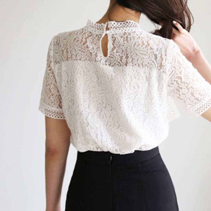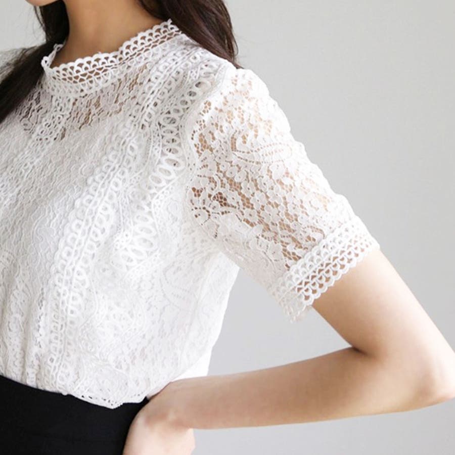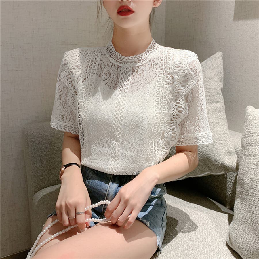 春夏/春/夏/春服/夏服/人気/新作/新着/プチプラ/大人/女性/レディース/シンプル/トレンド/カジュアル/韓国/韓国ファッション/オルチャン/量産型/オフィスファッション/オフィスカジュアル/フェミニン/上品/無地/レース/スタンドネック/半袖/2021098