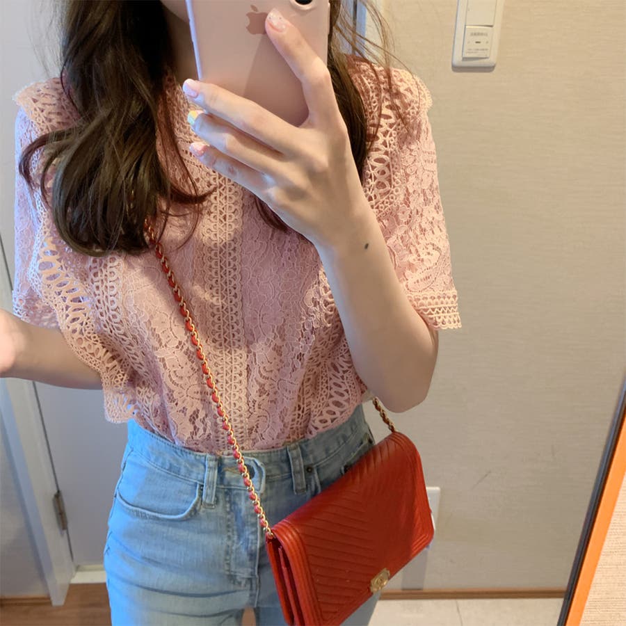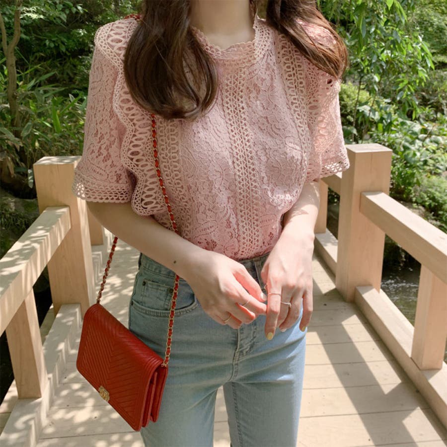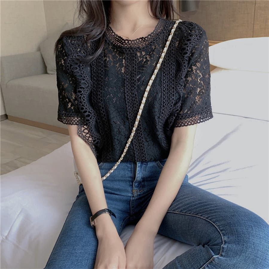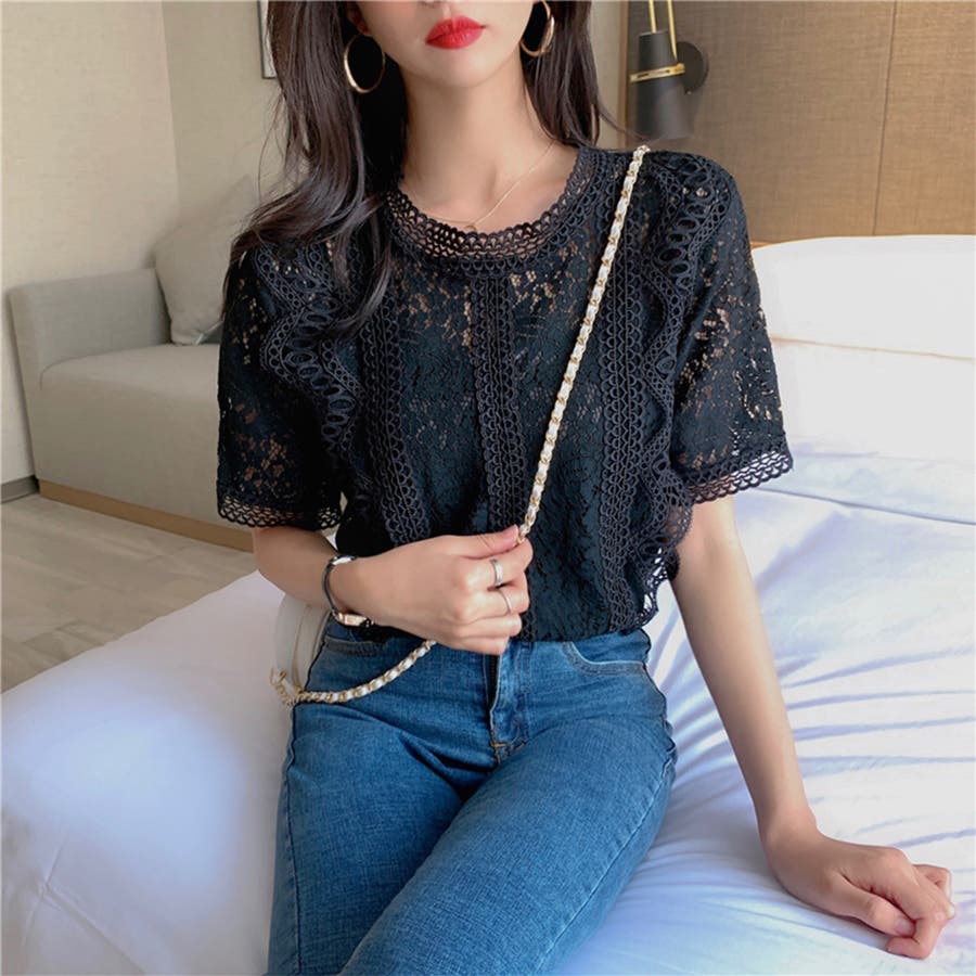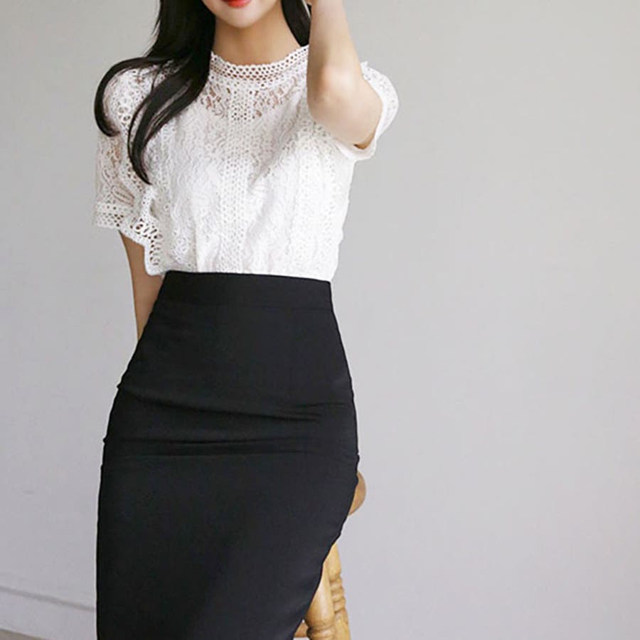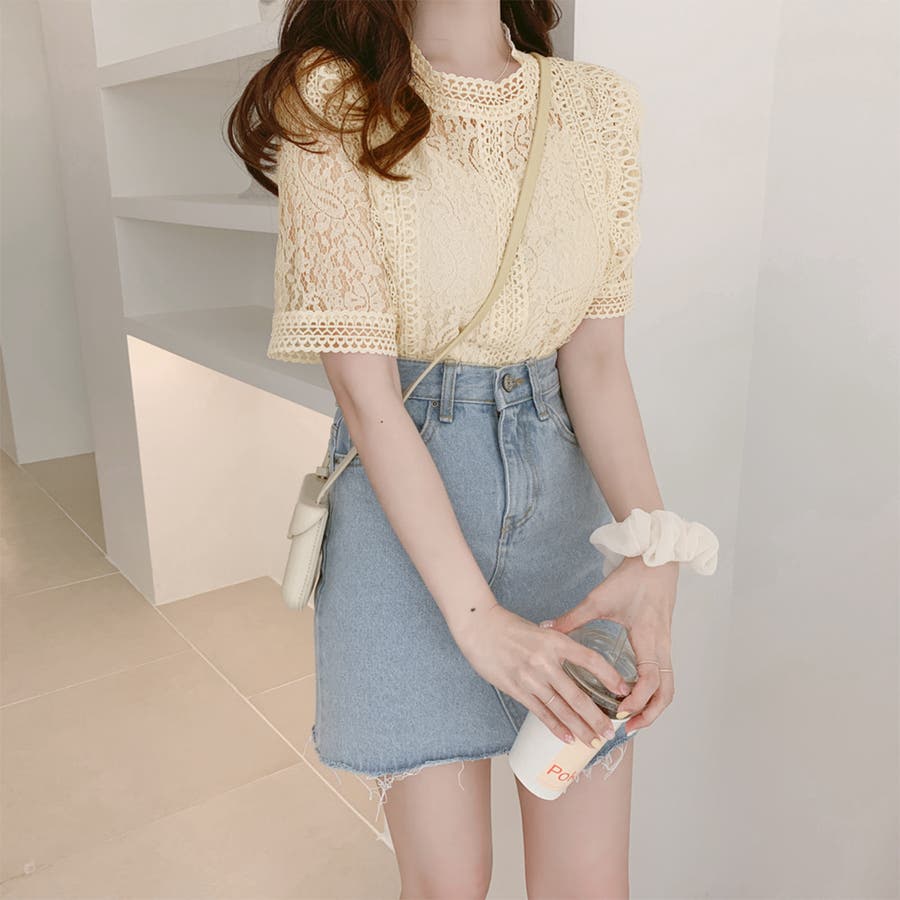春夏/春/夏/春服/夏服/人気/新作/新着/プチプラ/大人/女性/レディース/シンプル/トレンド/カジュアル/韓国/韓国ファッション/オルチャン/量産型/オフィスファッション/オフィスカジュアル/フェミニン/上品/無地/レース/スタンドネック/半袖/2021098
