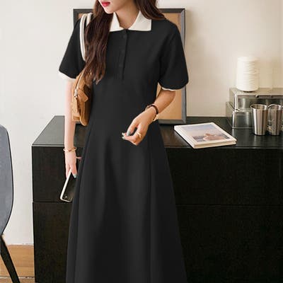 春夏/春/夏/春服/夏服/カジュアル/新作/新着/大人/女性/レディース/シンプル/トレンド/プチプラ/韓国/韓国ファッション/オルチャン/フェミニン/無地/ポロ衿/ロングワンピース/夏ワンピース/Aライン/2021158