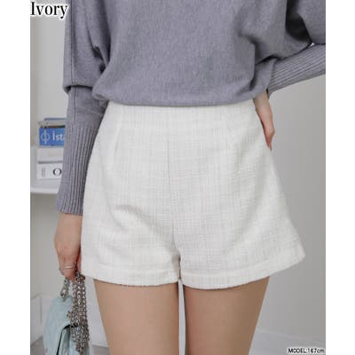 キラキラのラメツイード素材がシーズンムードを高めてくれるショートパンツ。